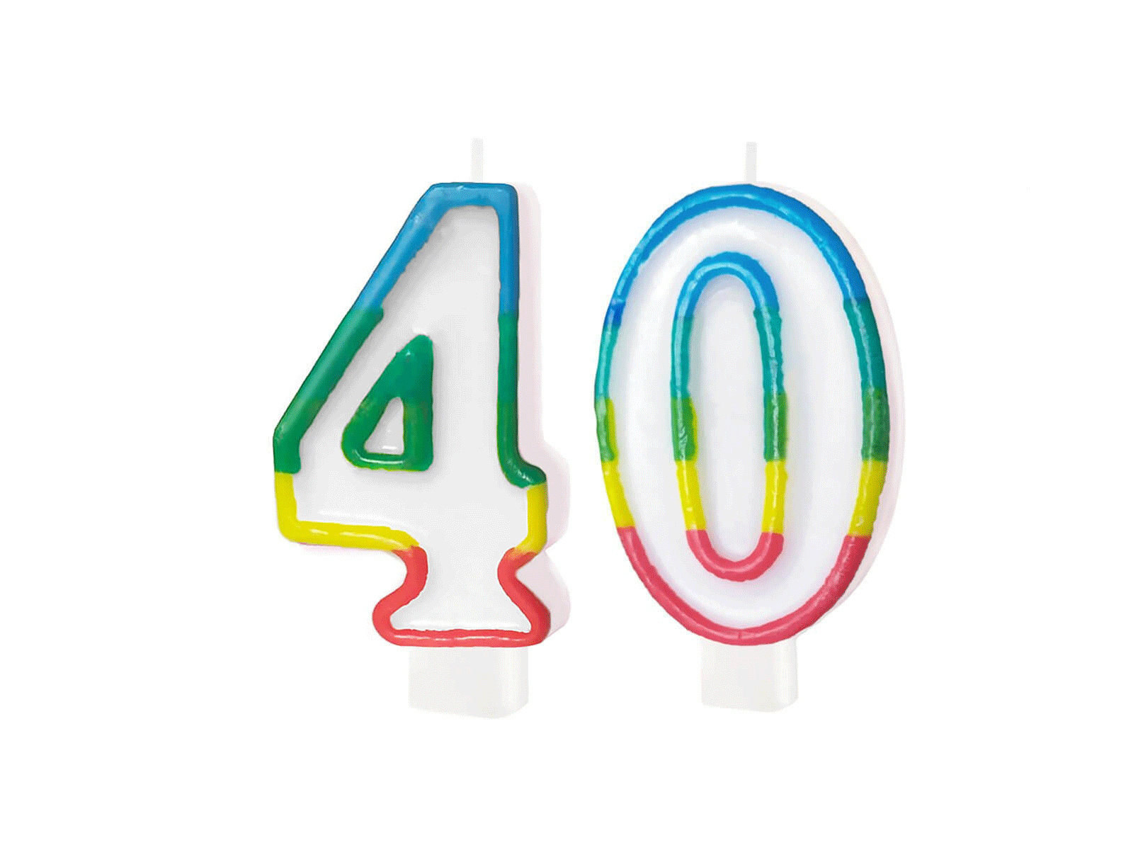 Számgyertyák színes szegéllyel 40-es számmal - 8,5 cm - 2 db.