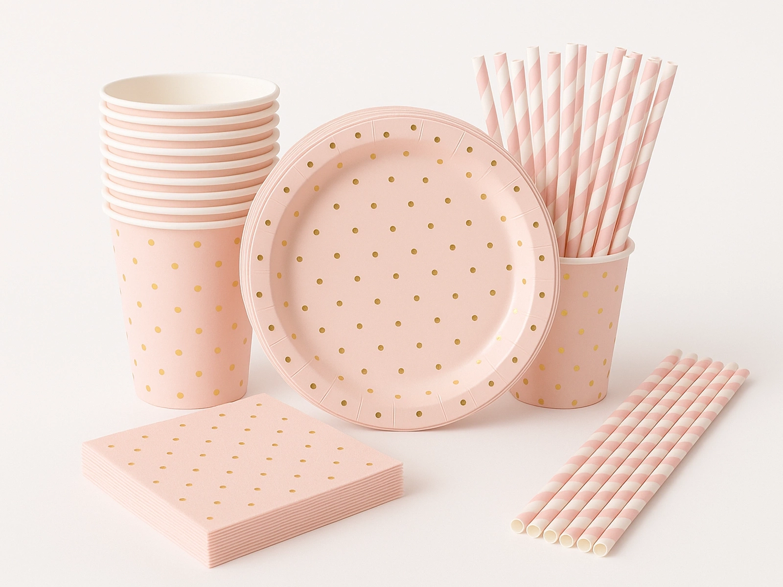 Világos rózsaszín születésnapi szalvéták arany kis pöttyökkel - 33 cm - 20 db.Ár: 681,00 Ft / opakowanie