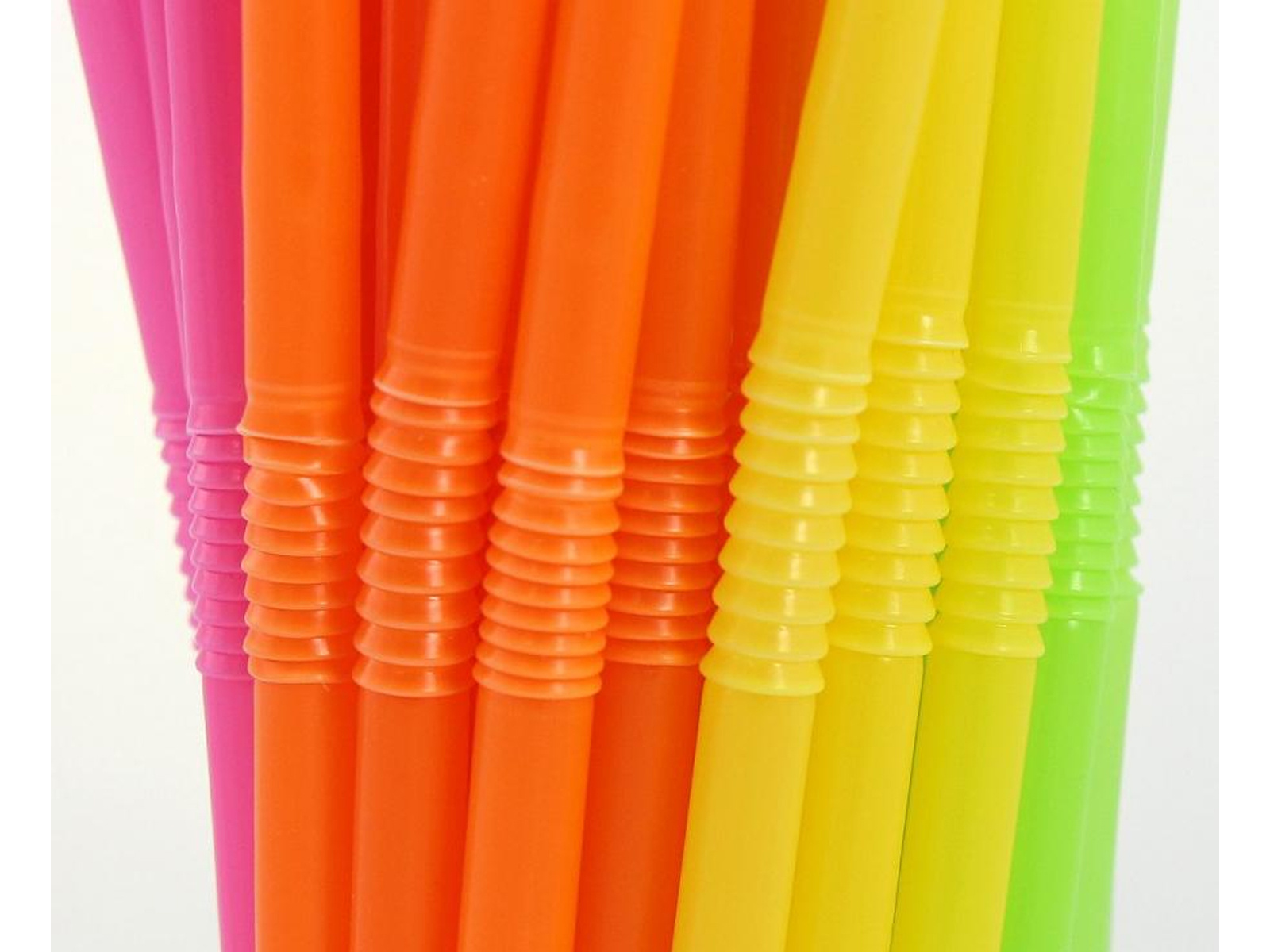 • Újrahasználható műanyag szívószálak narancssárga színben.