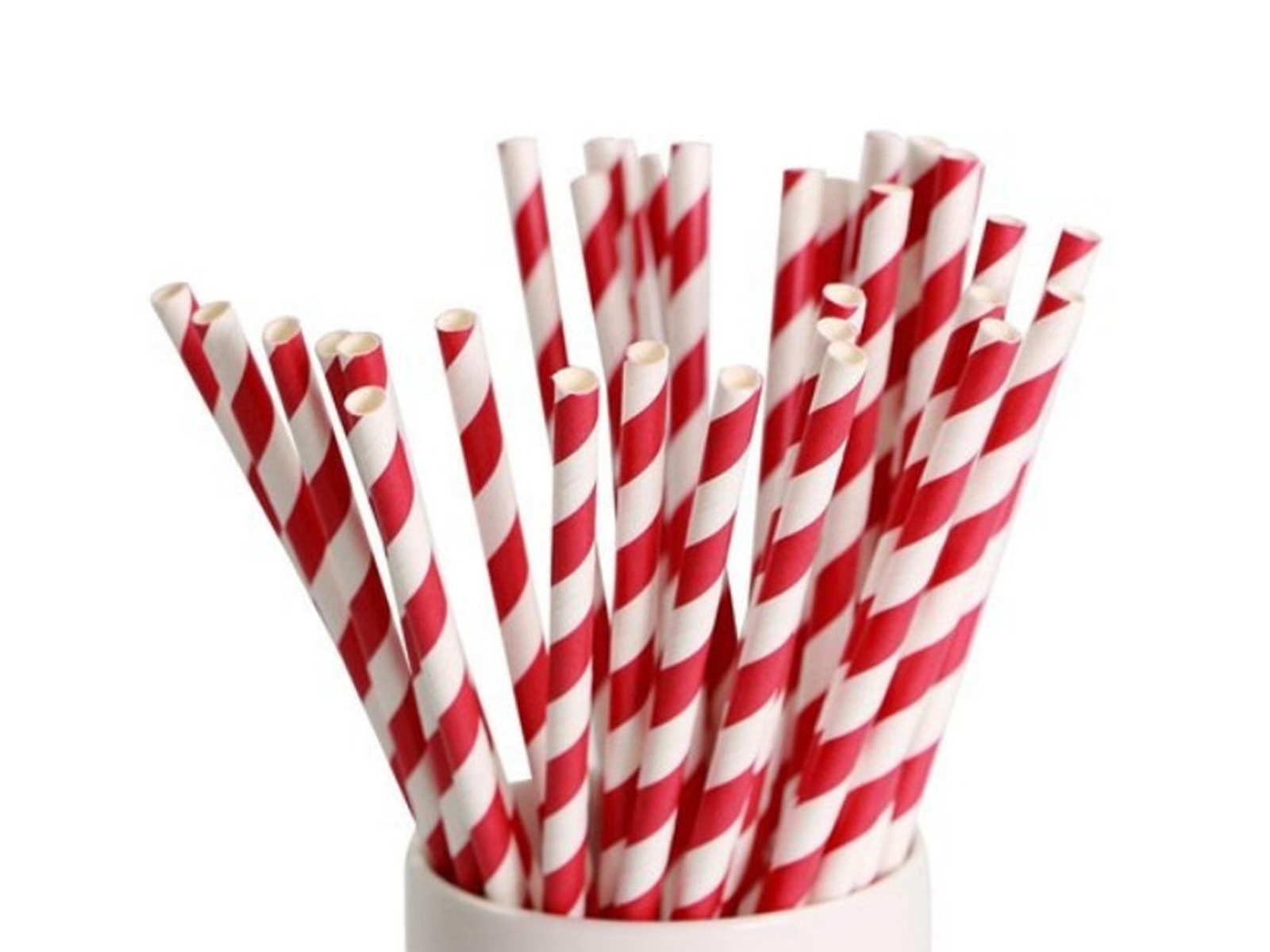 Egyenes papír szívószál piros csíkokkal - 20 db.