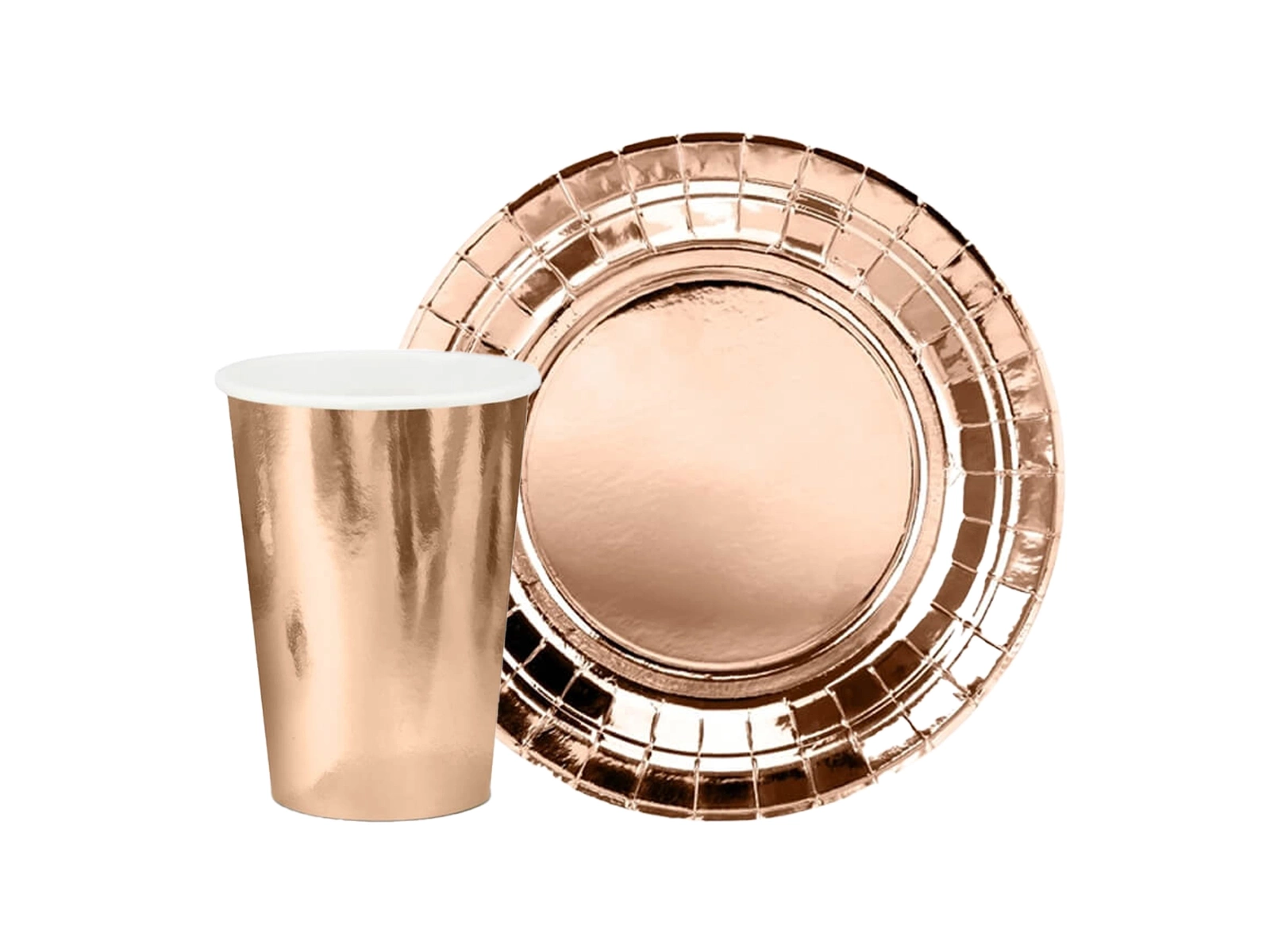Készlet poharak + papírtányérok rózsaszín és arany - 24 db.