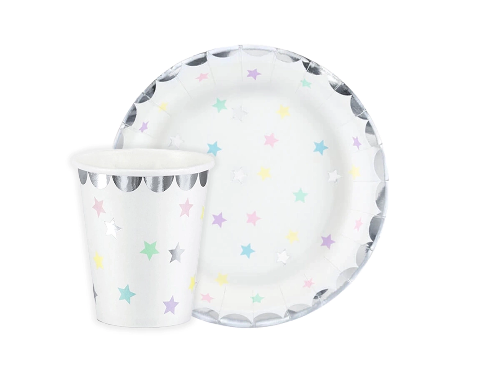 Csészék + papírtányérok készlet Egyszarvú csillagokban - 24 db.