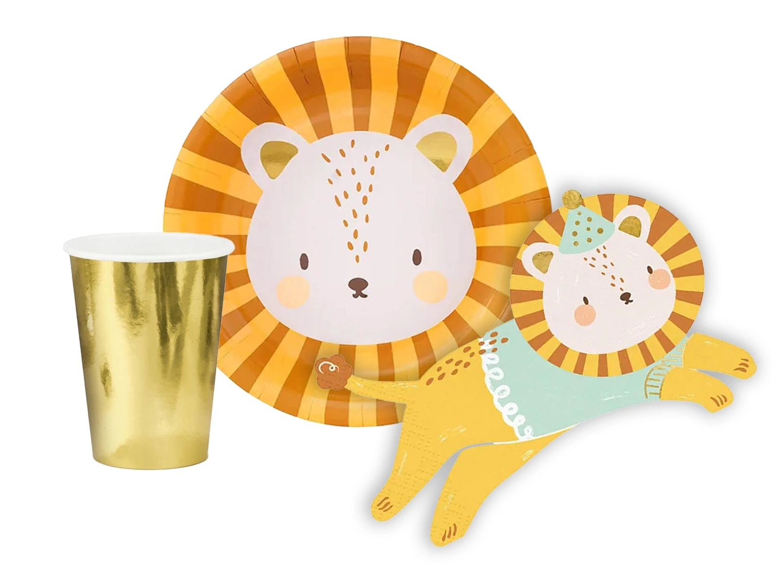 Csészék + tányérok + papírszalvéták Lion - 44 db.