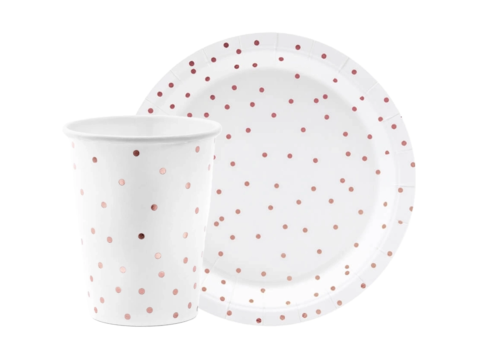 Készlet poharak + papírtányérok Dots fehér - 24 db.