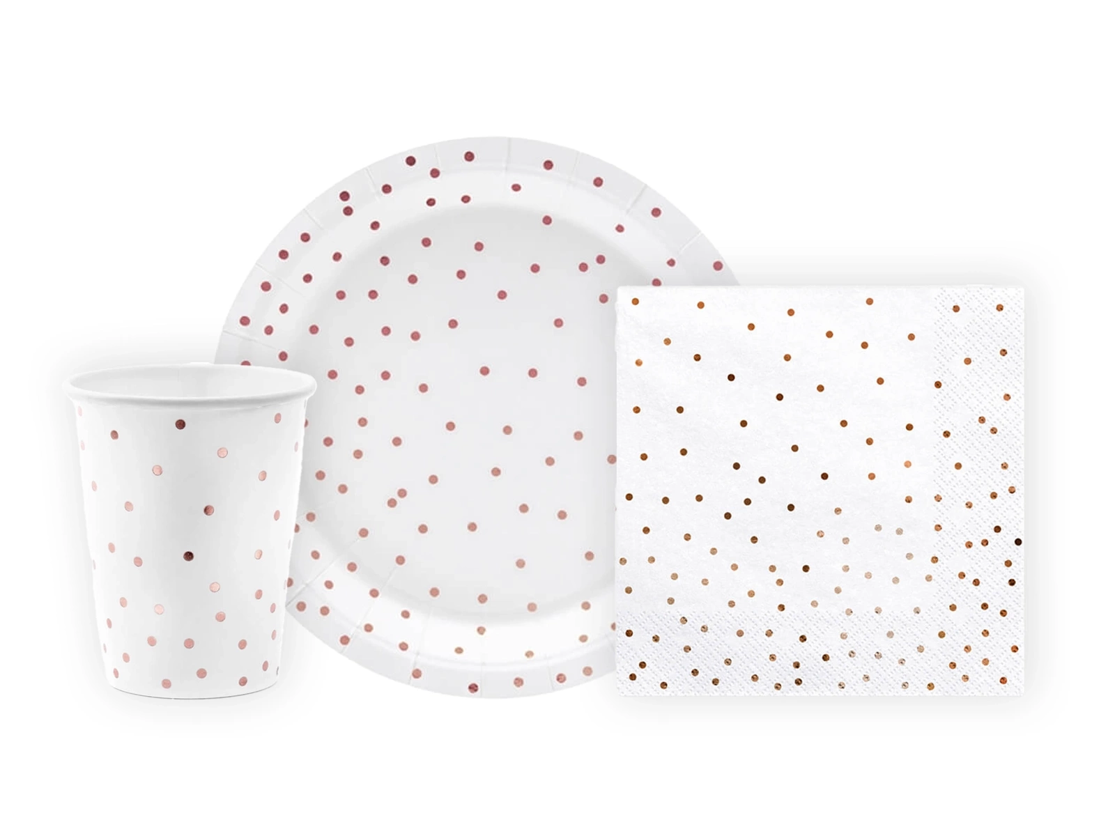 Csészék + tányérok + papírszalvéta készlet Dots fehér - 44 db.