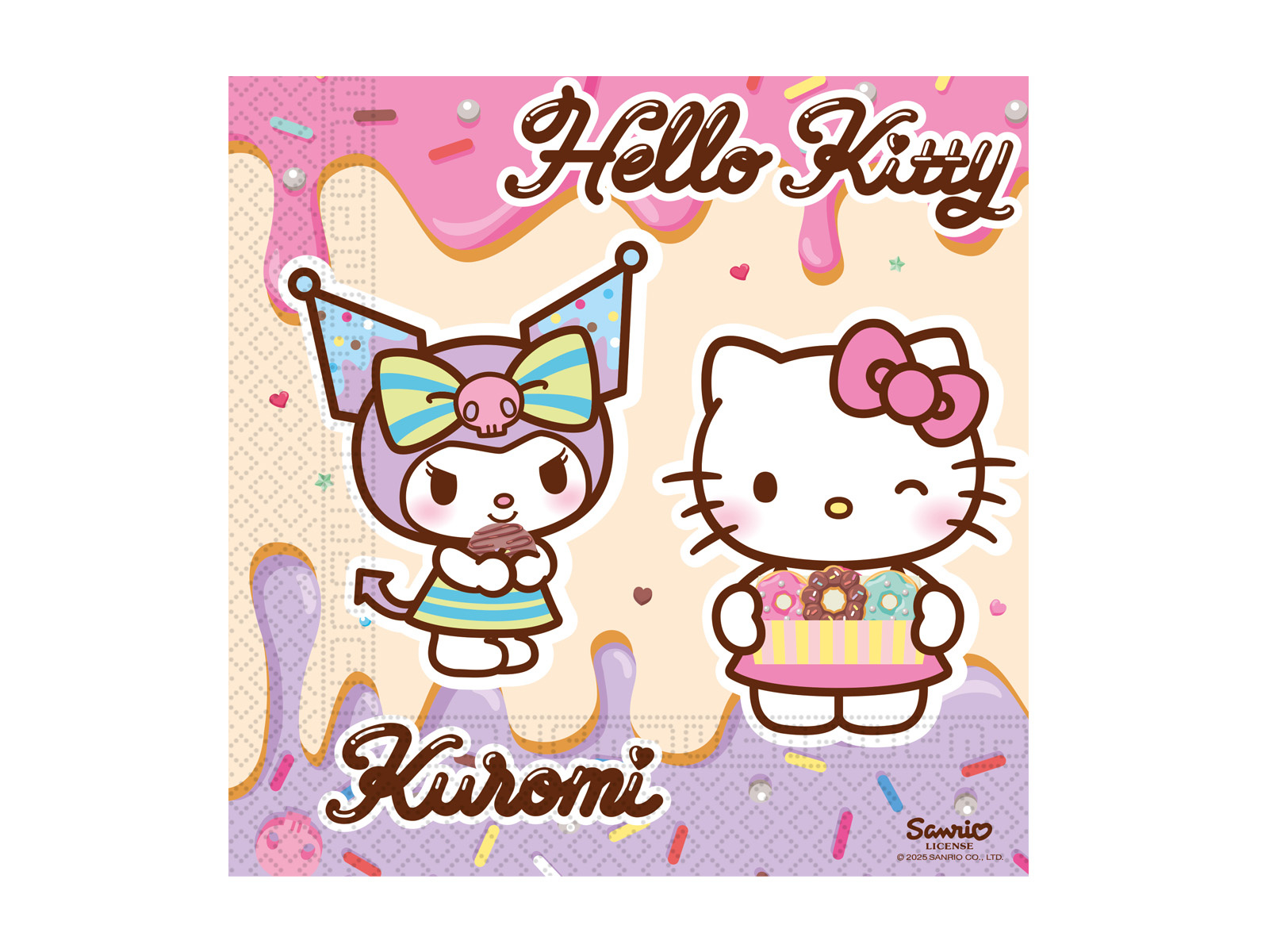 Hello Kitty & Kuromi születésnapi szalvéták - 33 cm - 20 db.