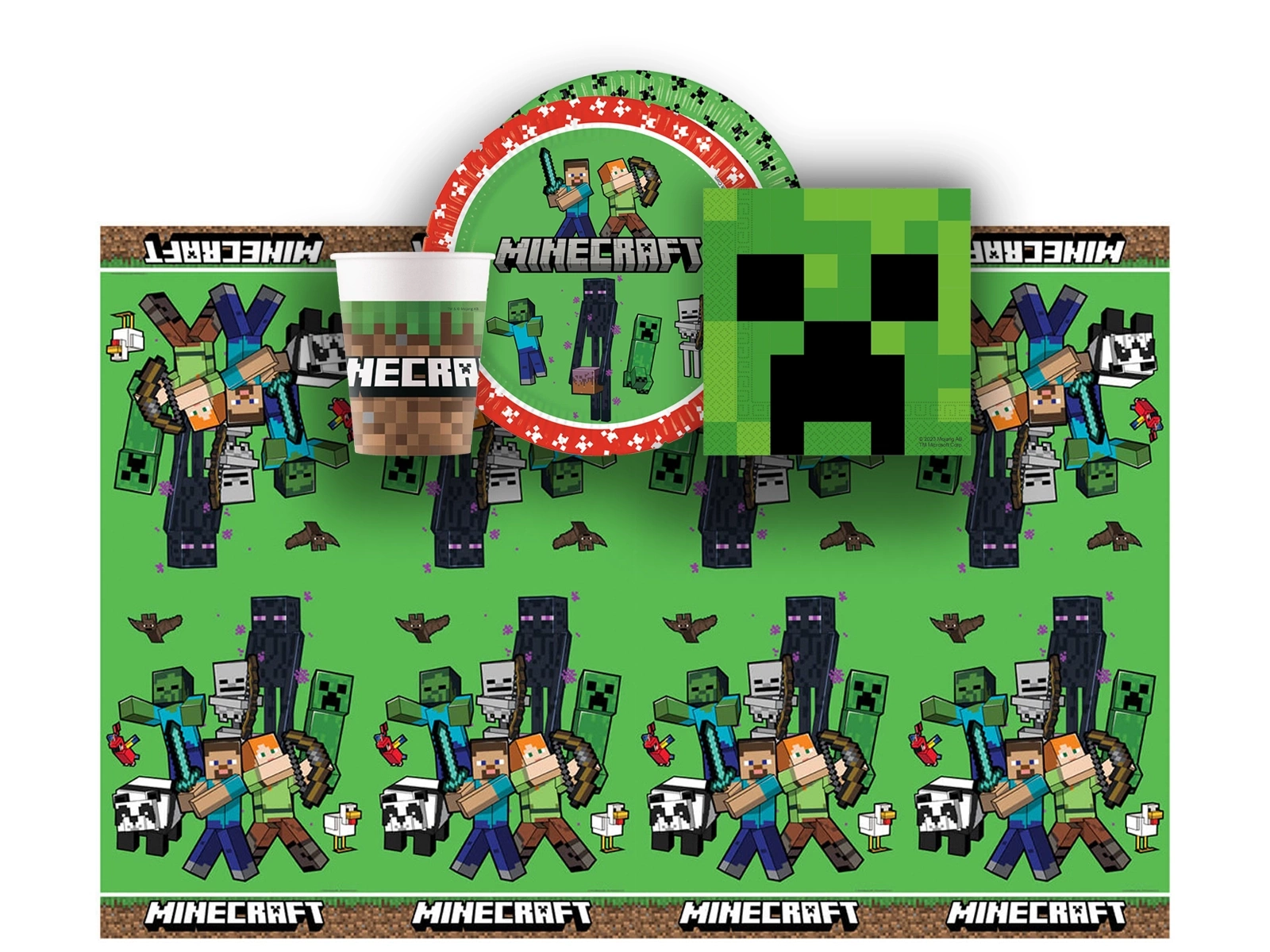 Asztalterítő szett + poharak + tányérok + Mineraft papírszalvéta - 37 db.