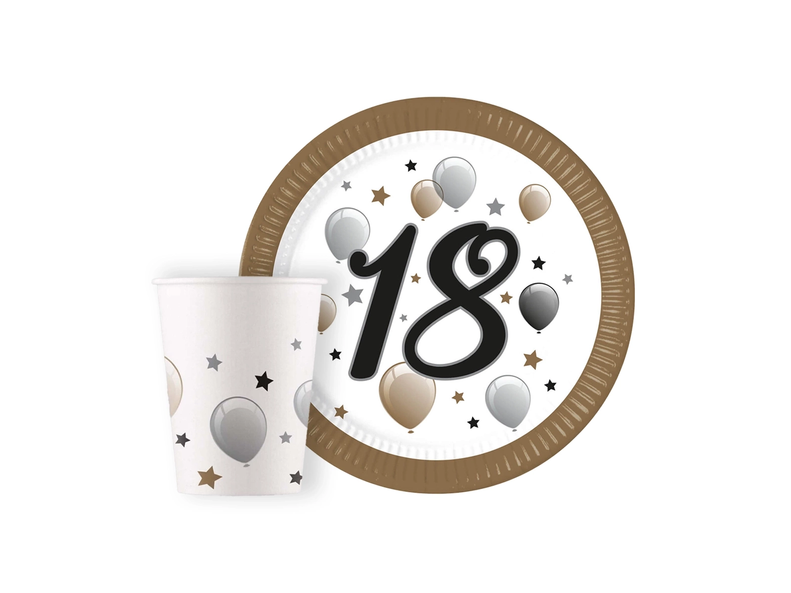 Pohár + papírtányér készlet 18. születésnapra - 16 db.