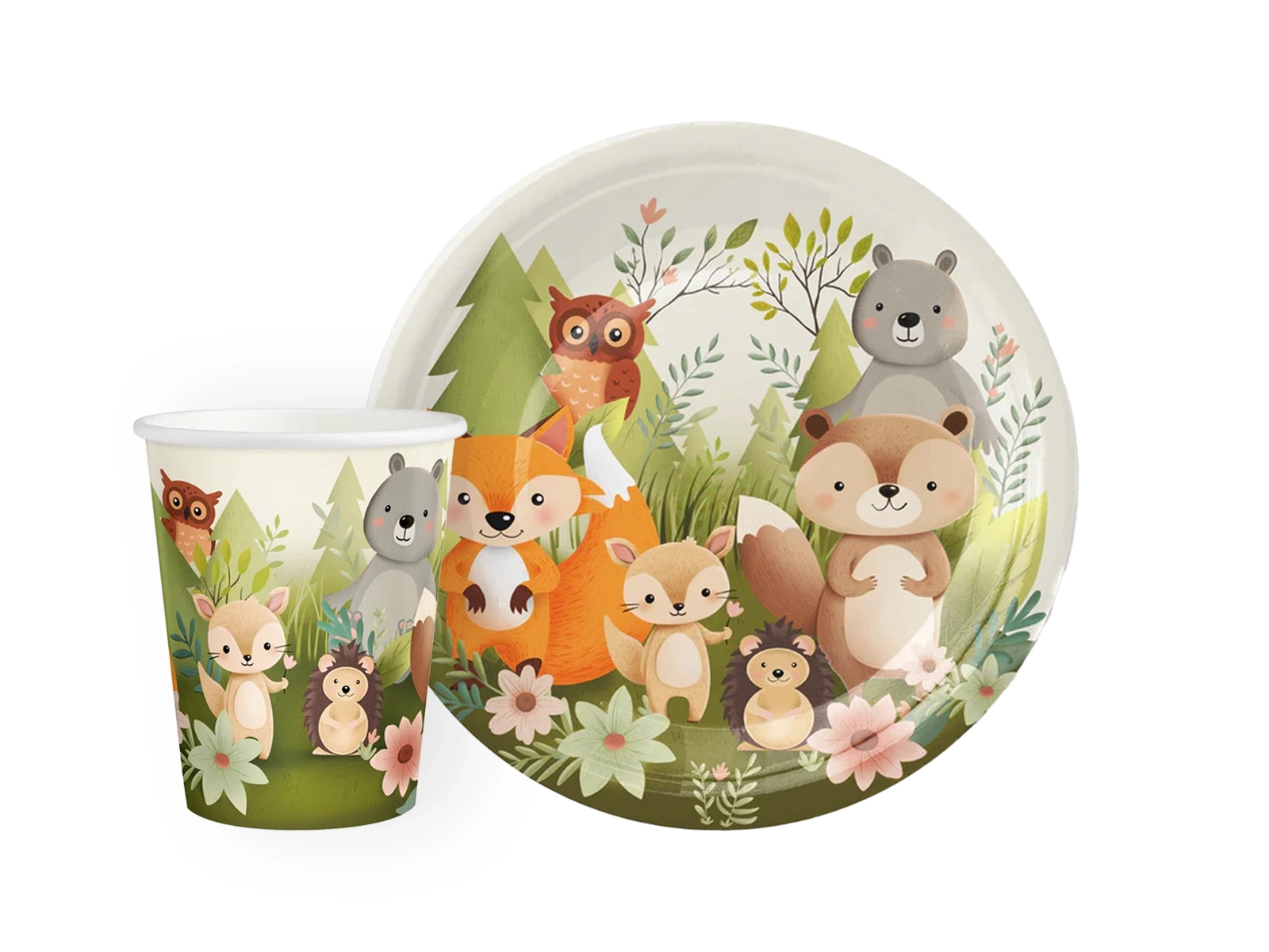 Forest Friends papírpohár + tányér készlet - 12 db.
