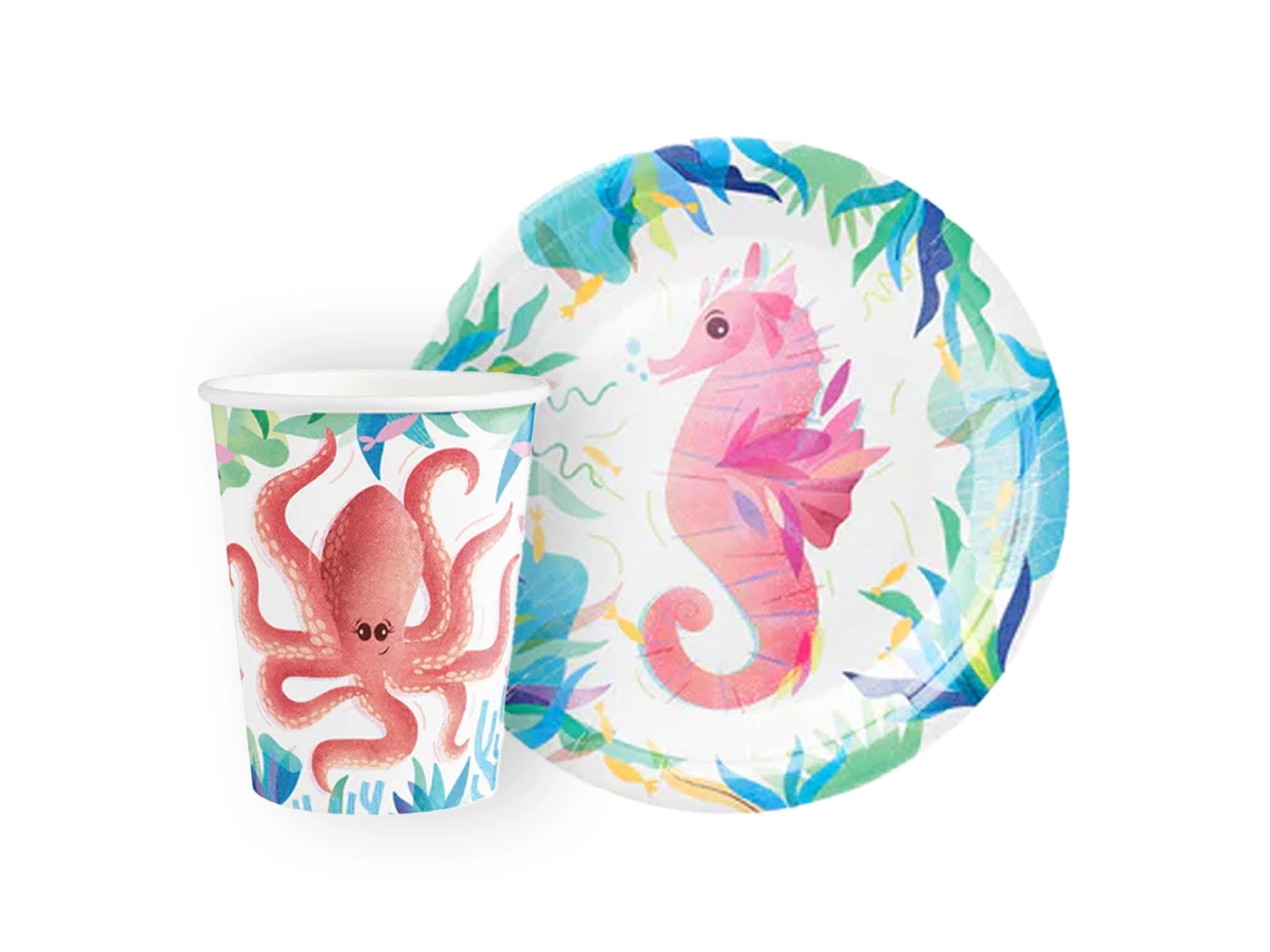 Óceán papírpoharak + tányérok készlet - 12 db.