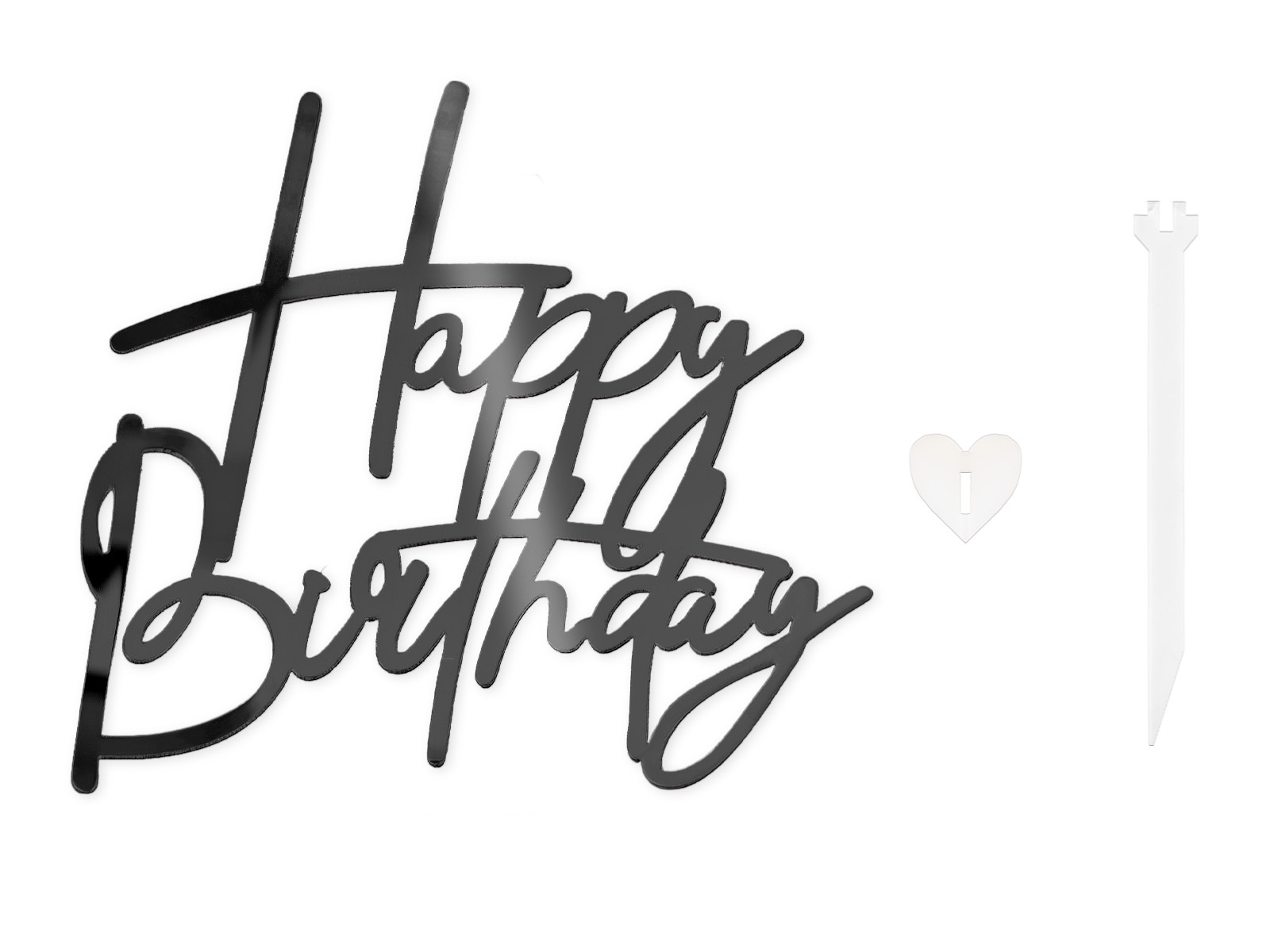 Boldog születésnapot tortadísz - fekete - 1 db.