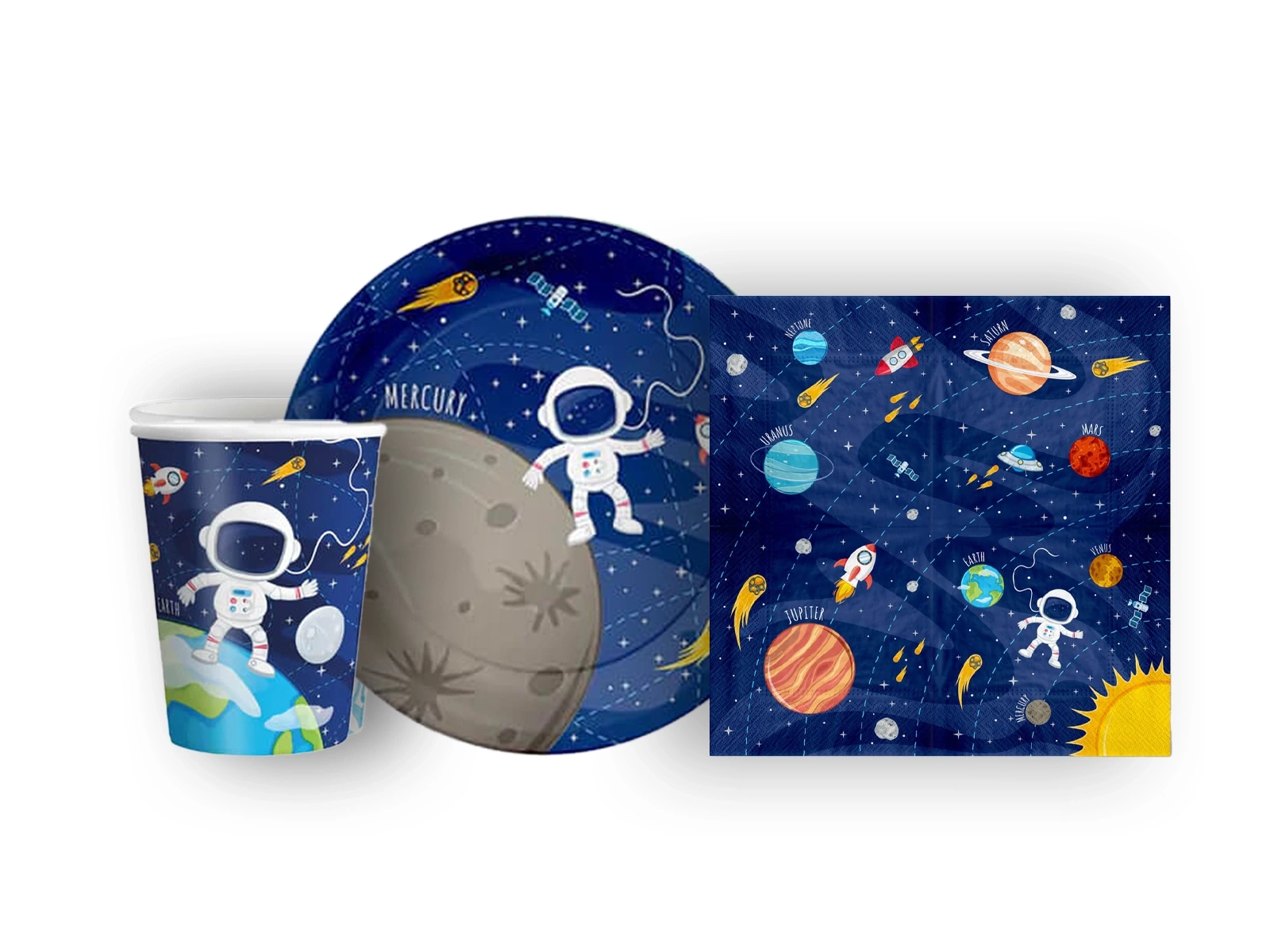 Születésnapi szett Planets - mix minták. Tökéletes egy űr-témájú születésnapi partihoz.