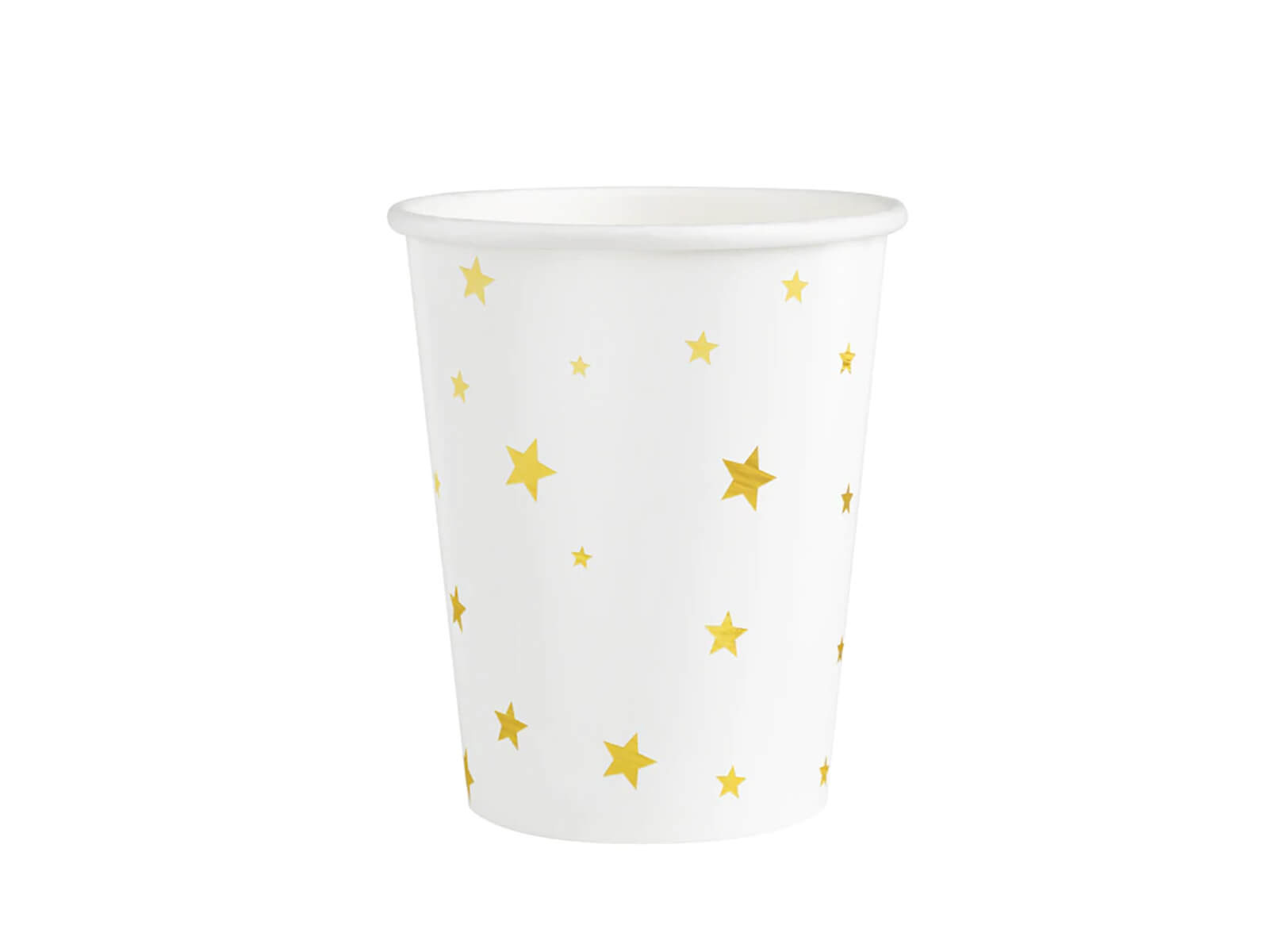 Papírpohár + tányér készlet fehér, arany csillagokkal - 12 db.
