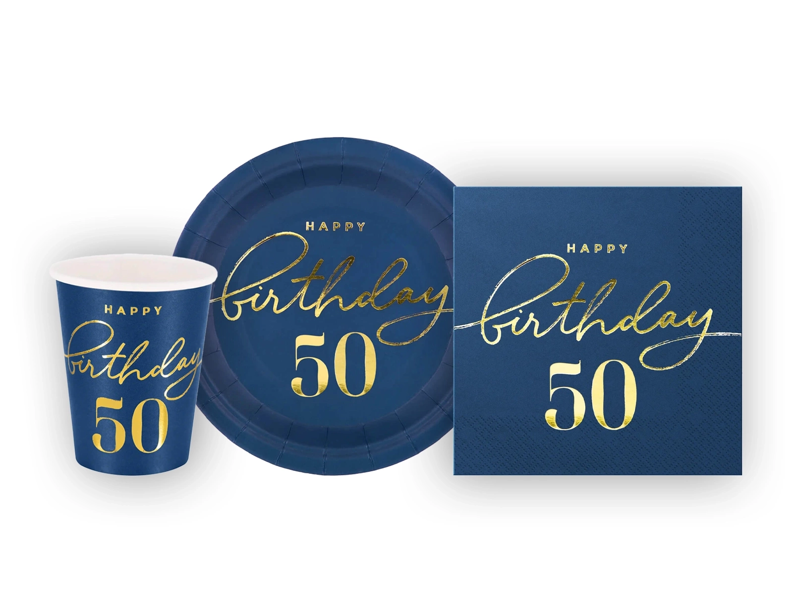 Csészék + szalvéták + papírtányérok 50. születésnapra - 22 db.