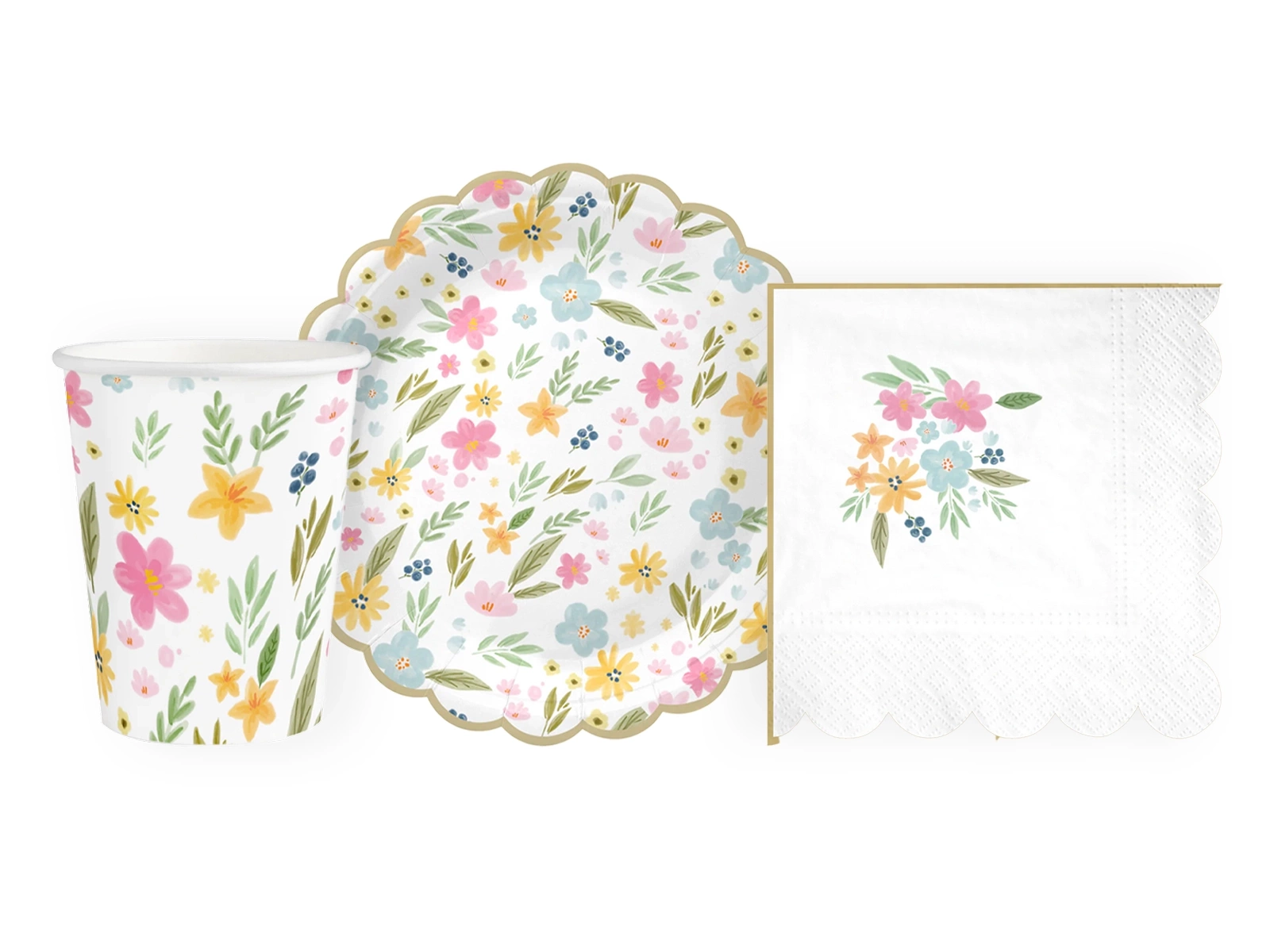 Szett poharak + szalvéták + papírtányérok Field Flowers - 22 db.