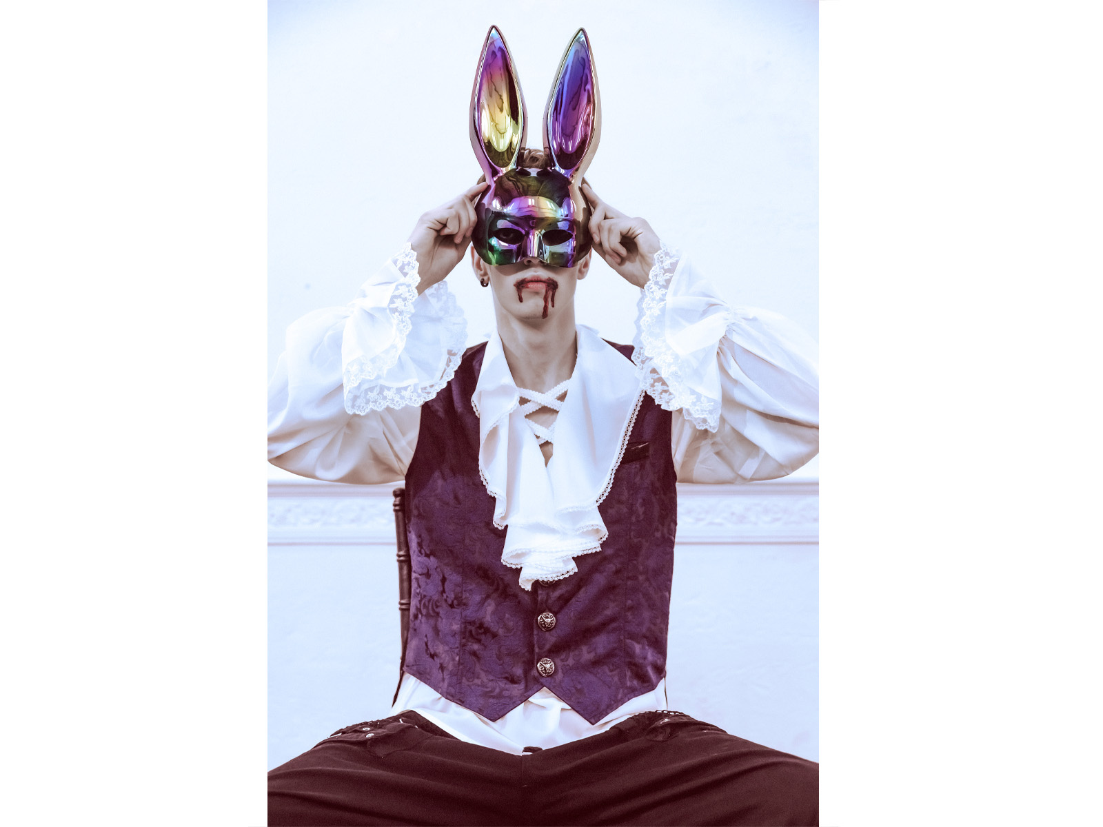 Nyúlfül maszk - fekete - 16.5x34cm - 1 db.