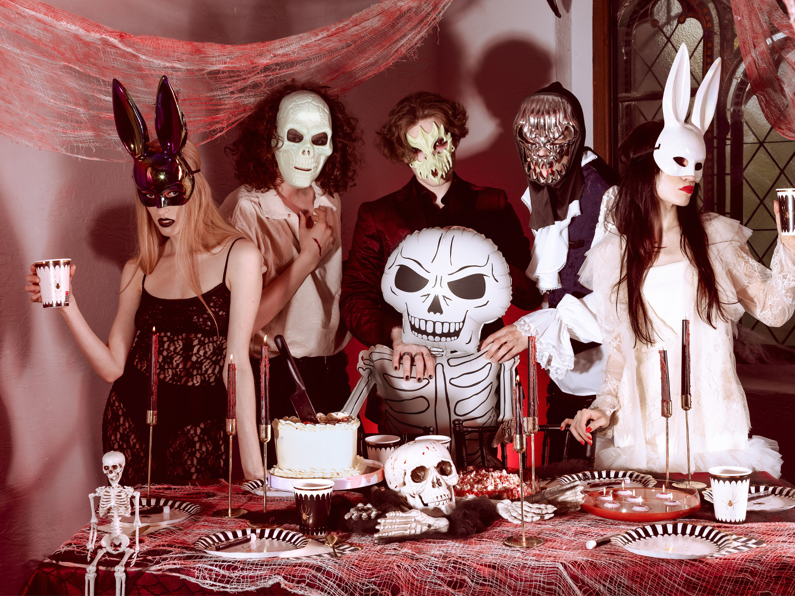 Csuklyás koponya maszk - 18.5x24.5cm - 1 db.