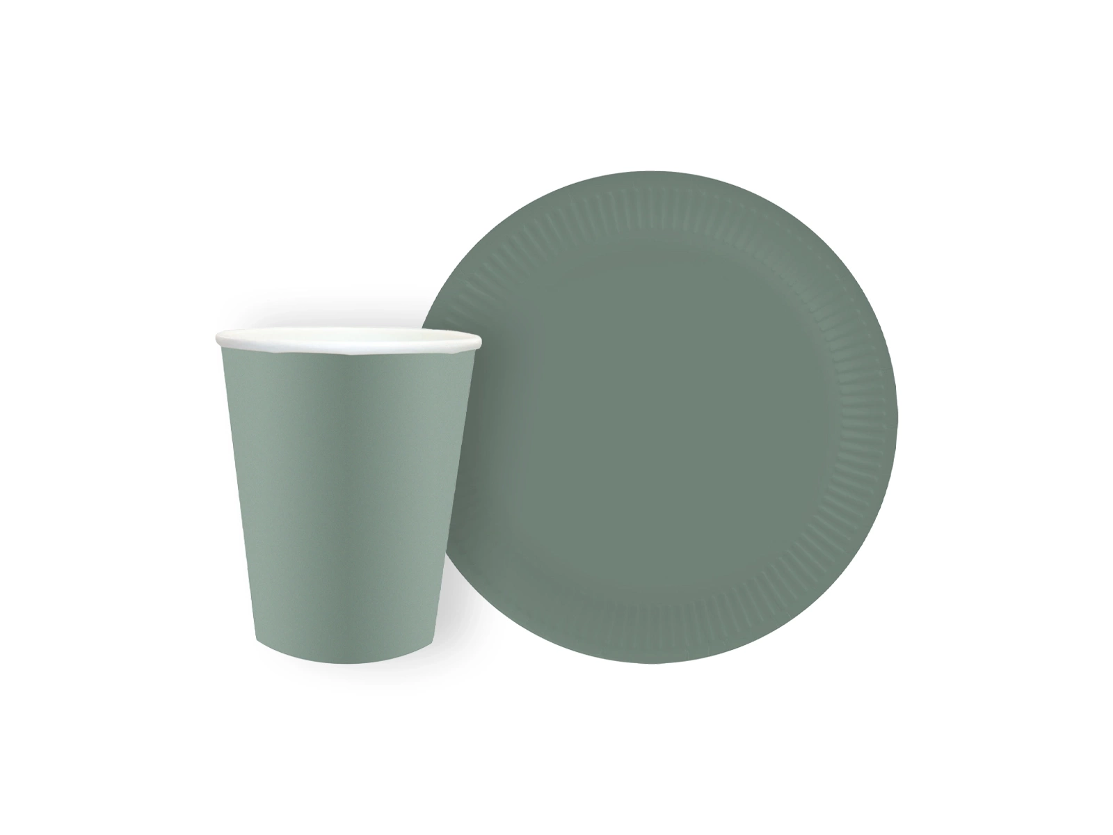 Sötétzöld pohár + papírtányér készlet - 24 db.