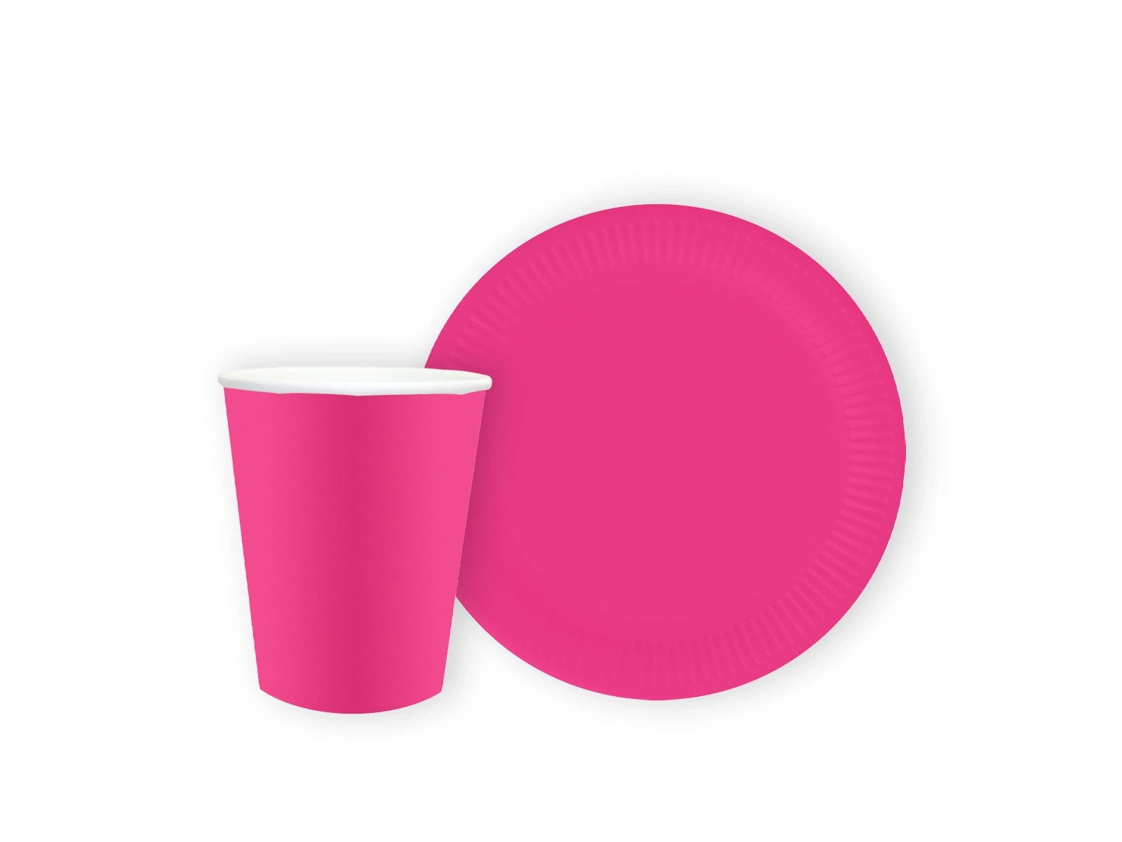 Sötét rózsaszínű pohár + papírtányér készlet - 24 db.