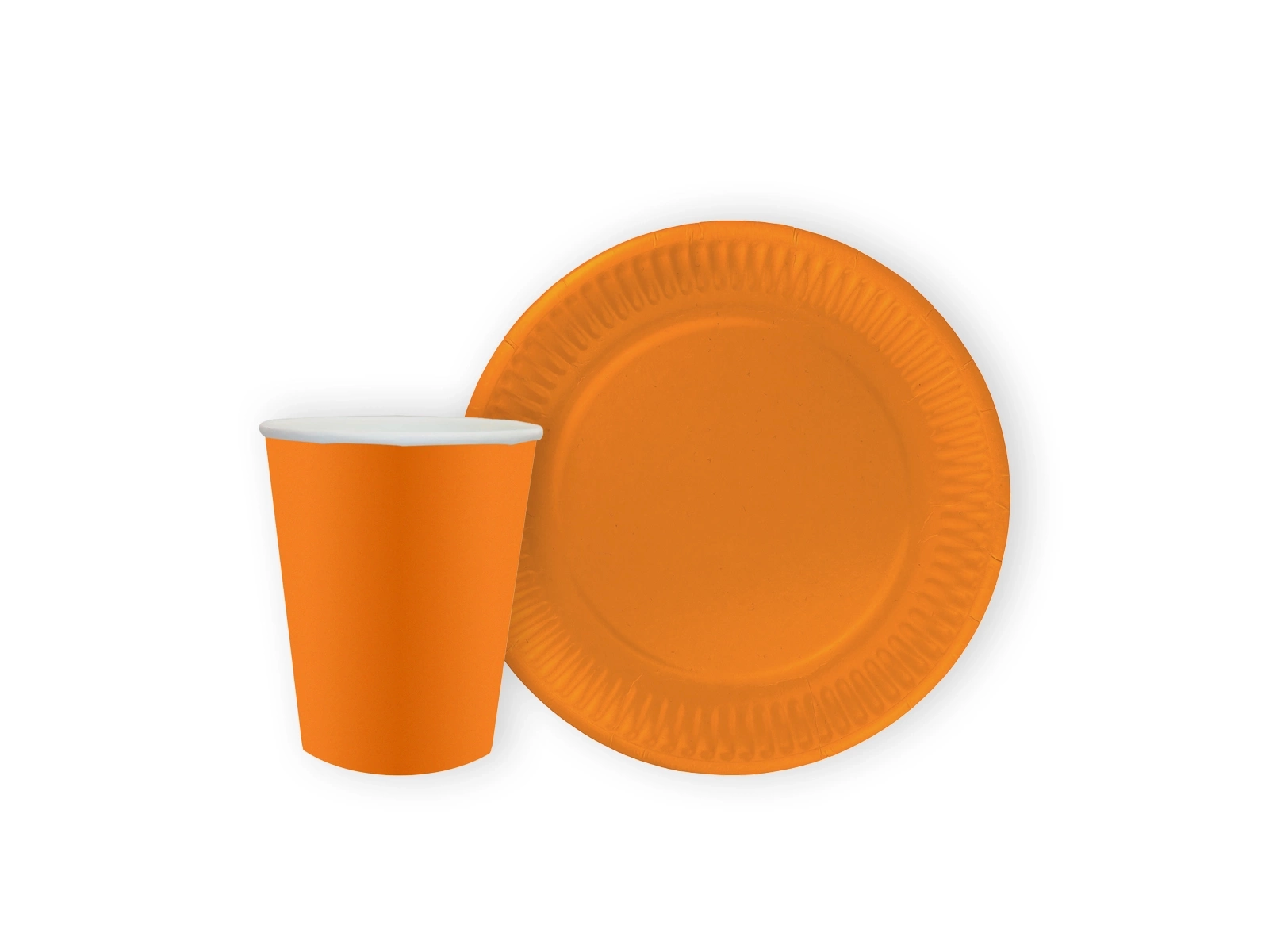Narancssárga papírpoharak + tányérok készlet - 24 db.