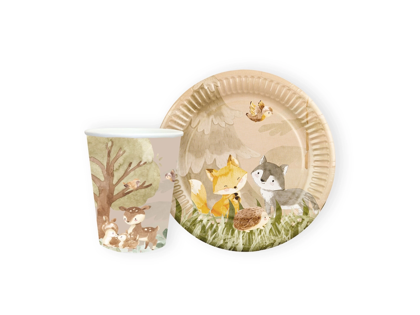 Készlet poharak + papírtányérok Forest Animals - 24 db.