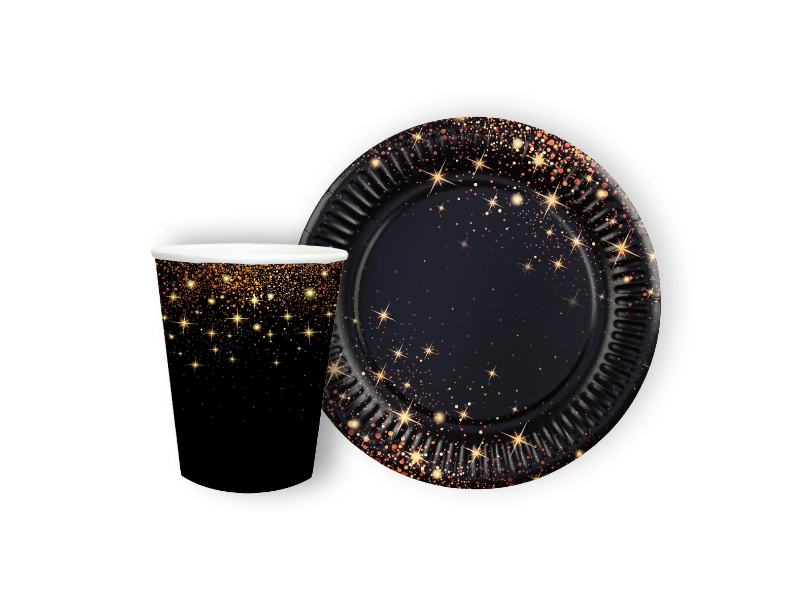 Szikrázó papírpoharak + tányérok készlet - 24 db