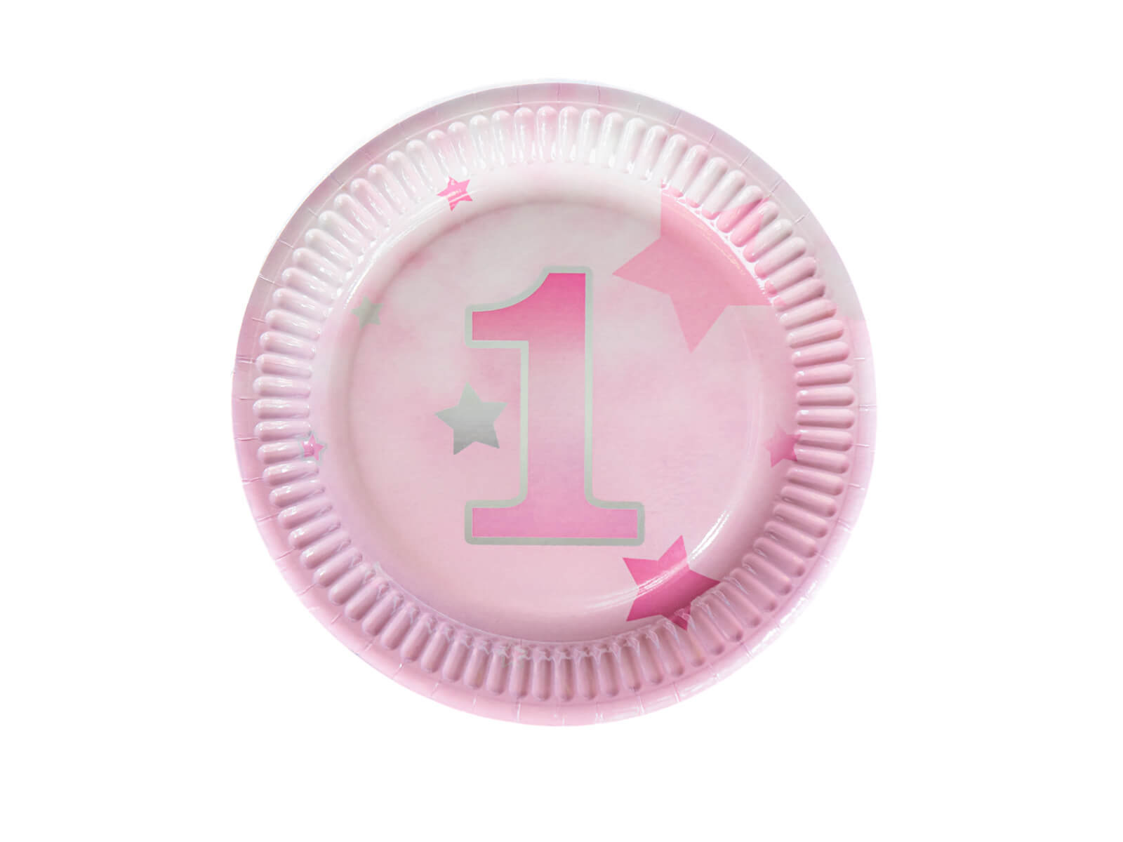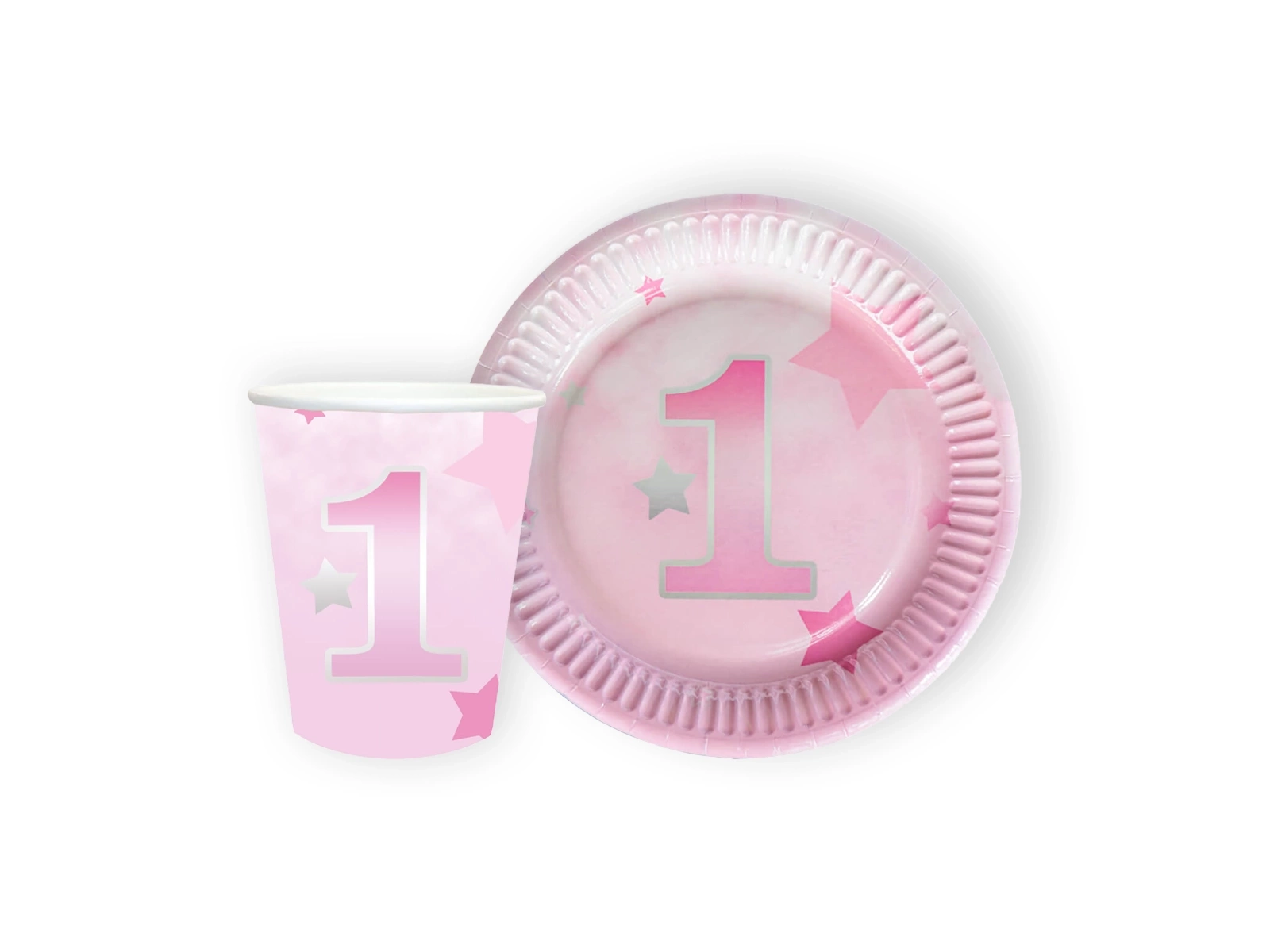 • Egyszer használatos papír étkészlet rózsaszínben az 1-es számmal, tökéletes egy lány születésnapi partira. Műanyagot tartalmaz.