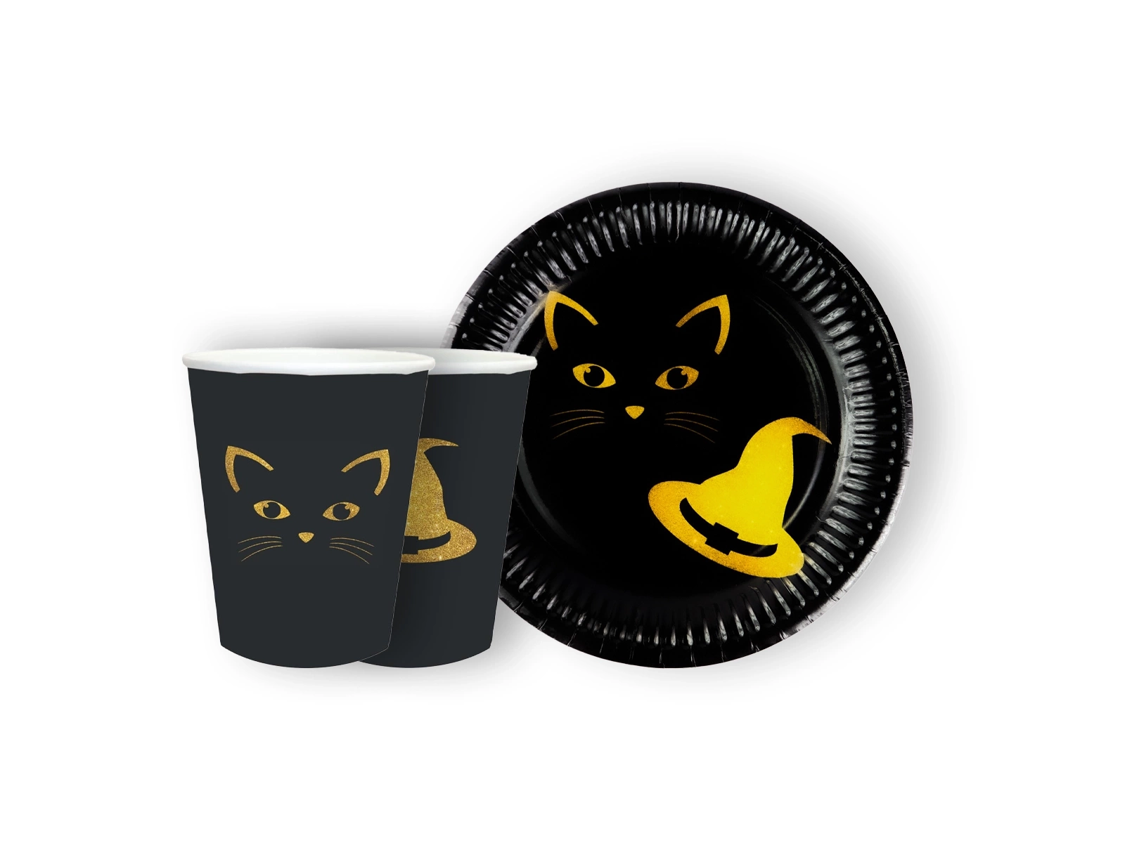 Halloween boszorkány és macska papírpohár + tányér készlet - 24 db.