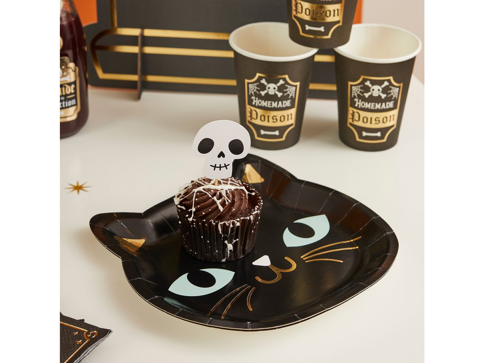 Fekete macska papírtányér - 18.5cm x 20.5cm - 8 db.