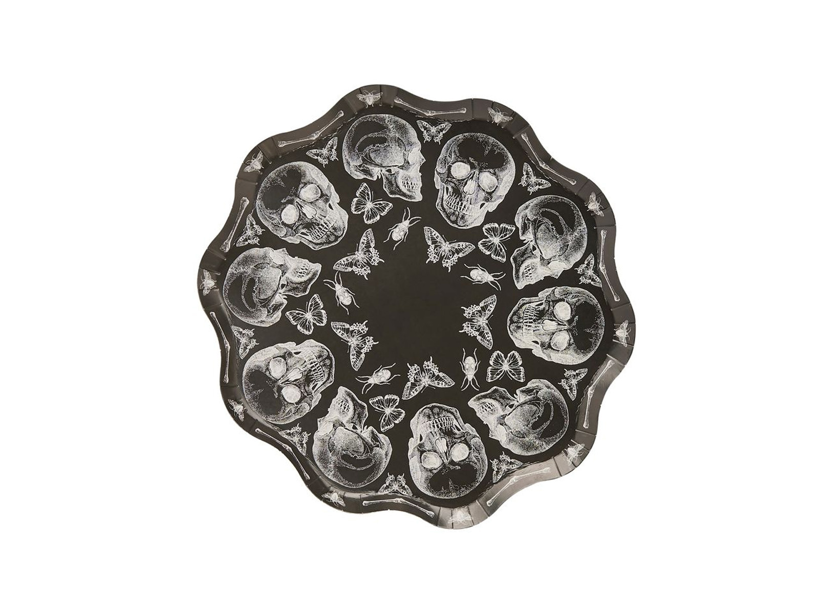 Halloween papír tányérok koponyákkal - 23 cm - 8 db.