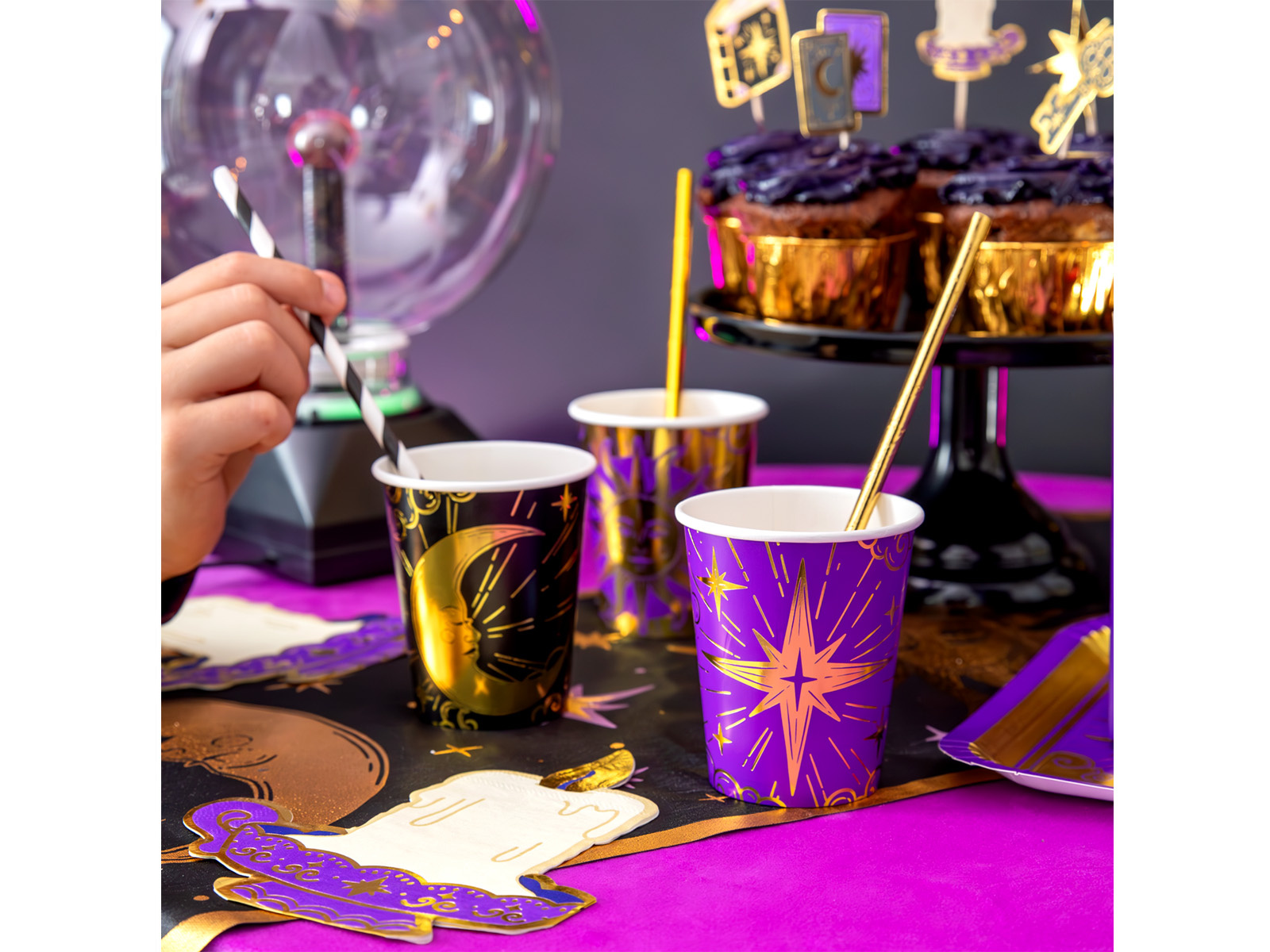 • Tarot kártya mintákkal nyomtatott papírpoharak.