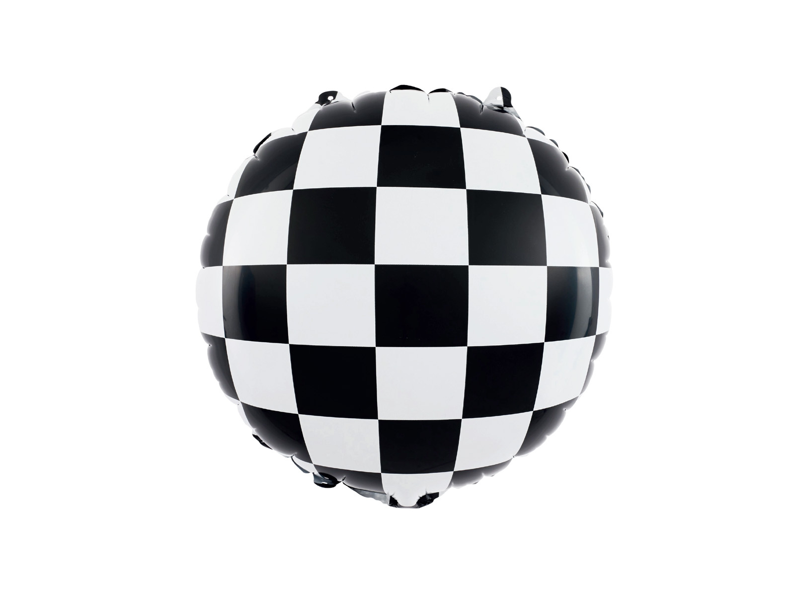 • Fólia léggömb fekete-fehér sakktábla nyomtatással.