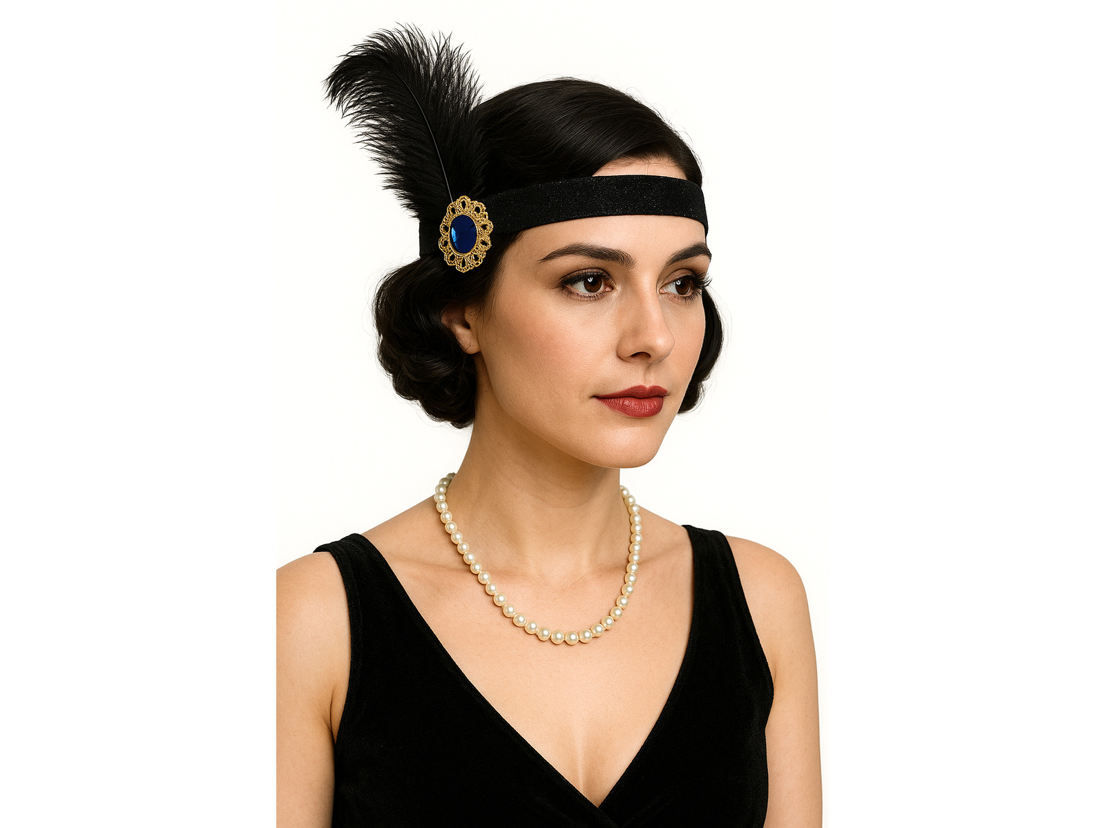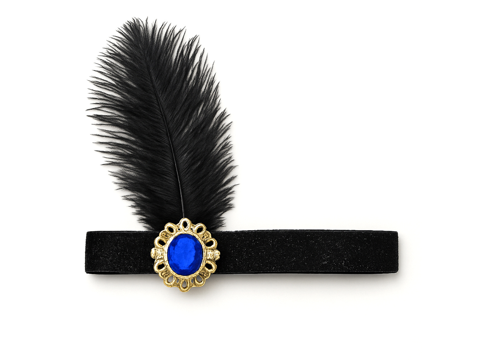 Retro fekete csillogó tollas fejpánt - 1 db.
