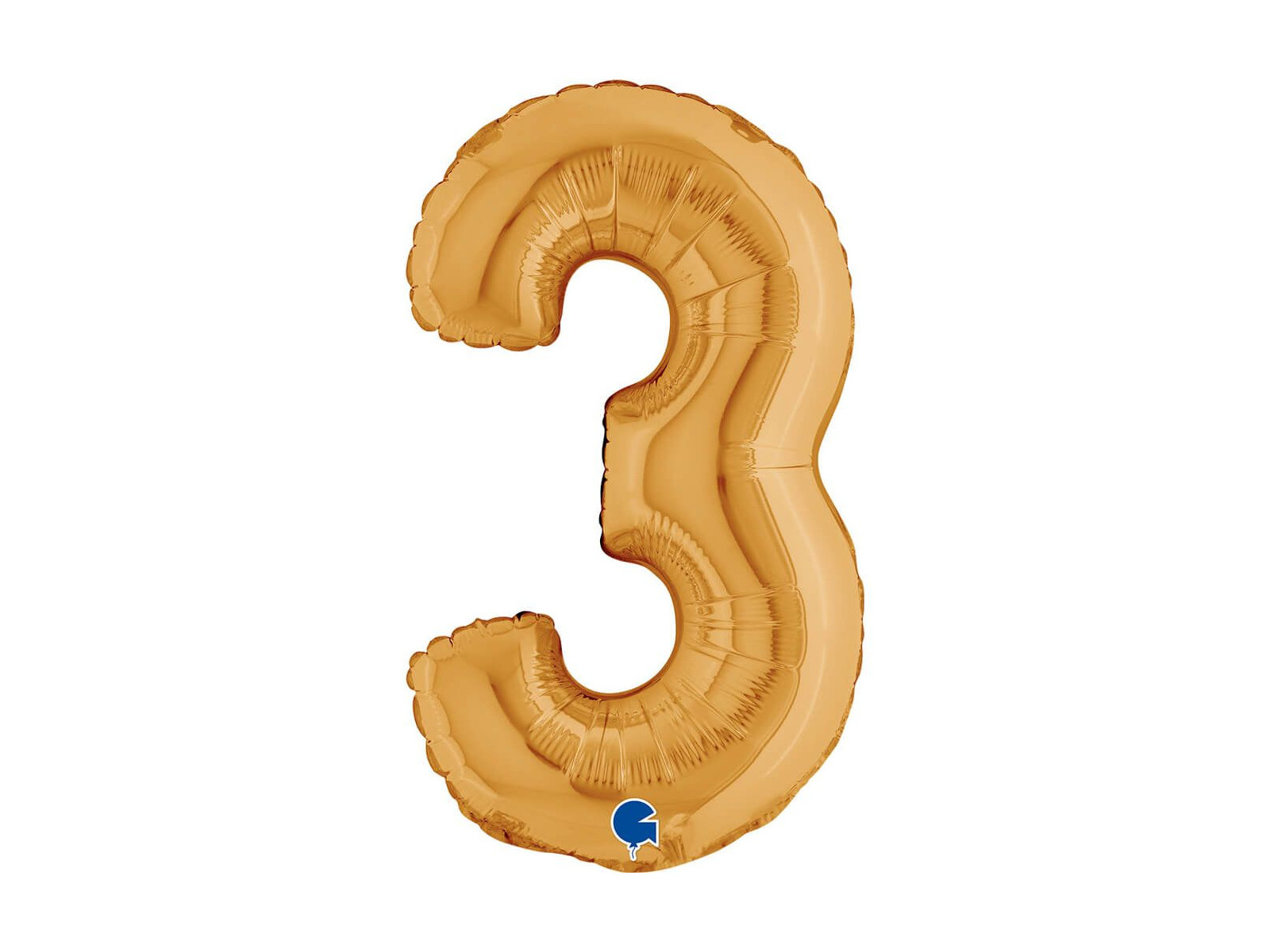 Fólia lufi szám 3 arany - 14" - 1 db.