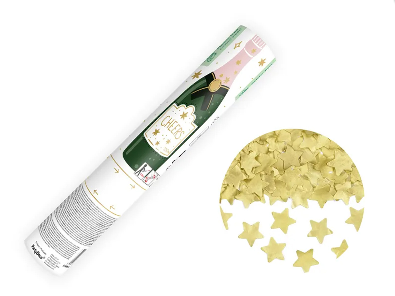 Pezsgő arany cső aranycsillagokkal - 20 cm - 1 db.