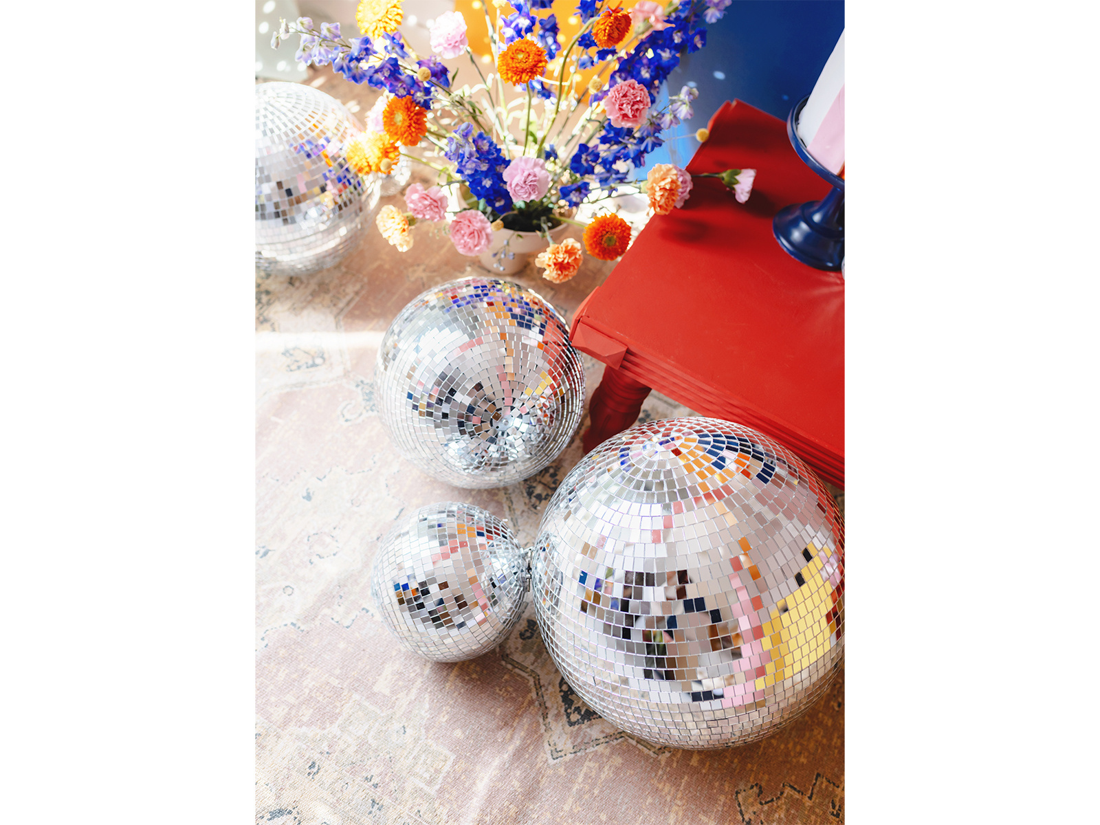 • Disco gömb ezüst színben, tökéletes dekoráció egy diszkó stílusú partihoz.