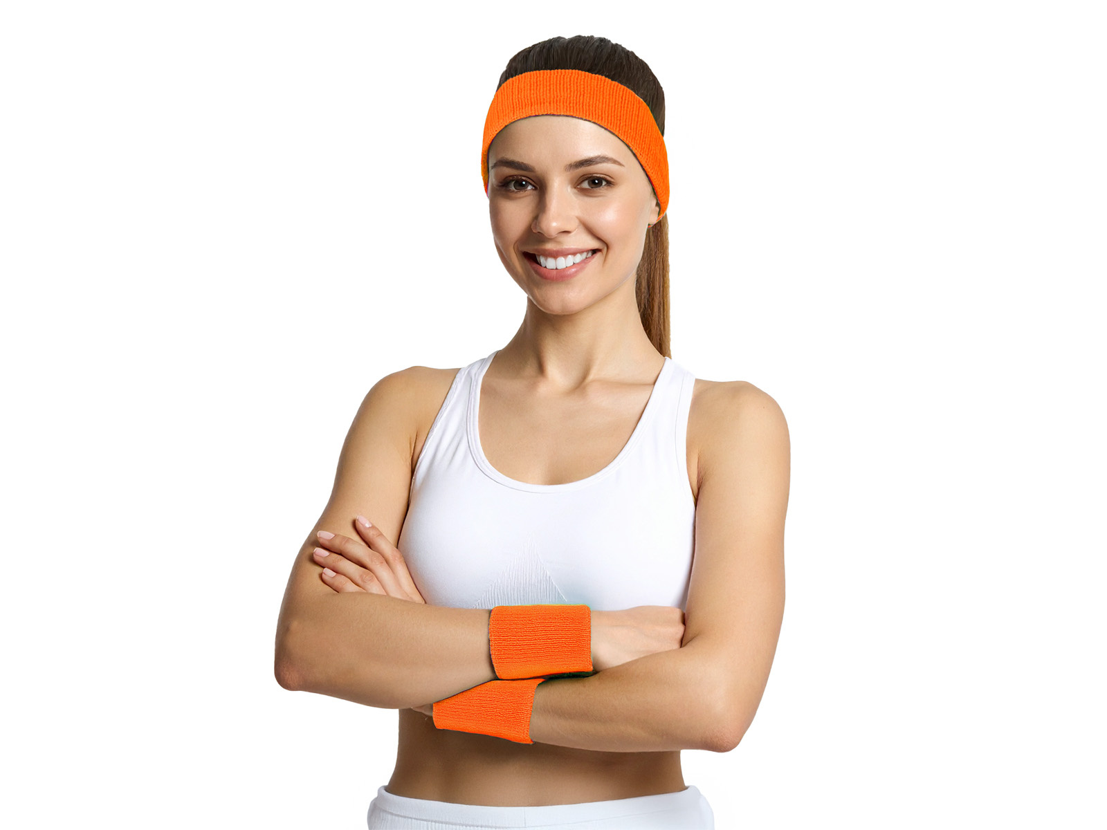 • Kar- és fejpánt készlet neon narancssárga színben.