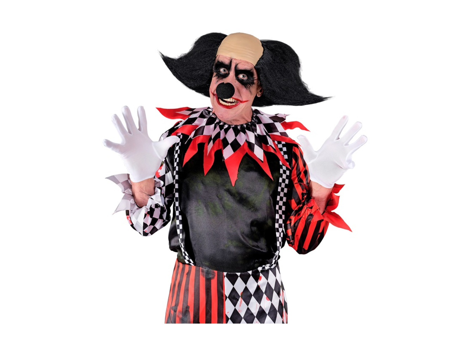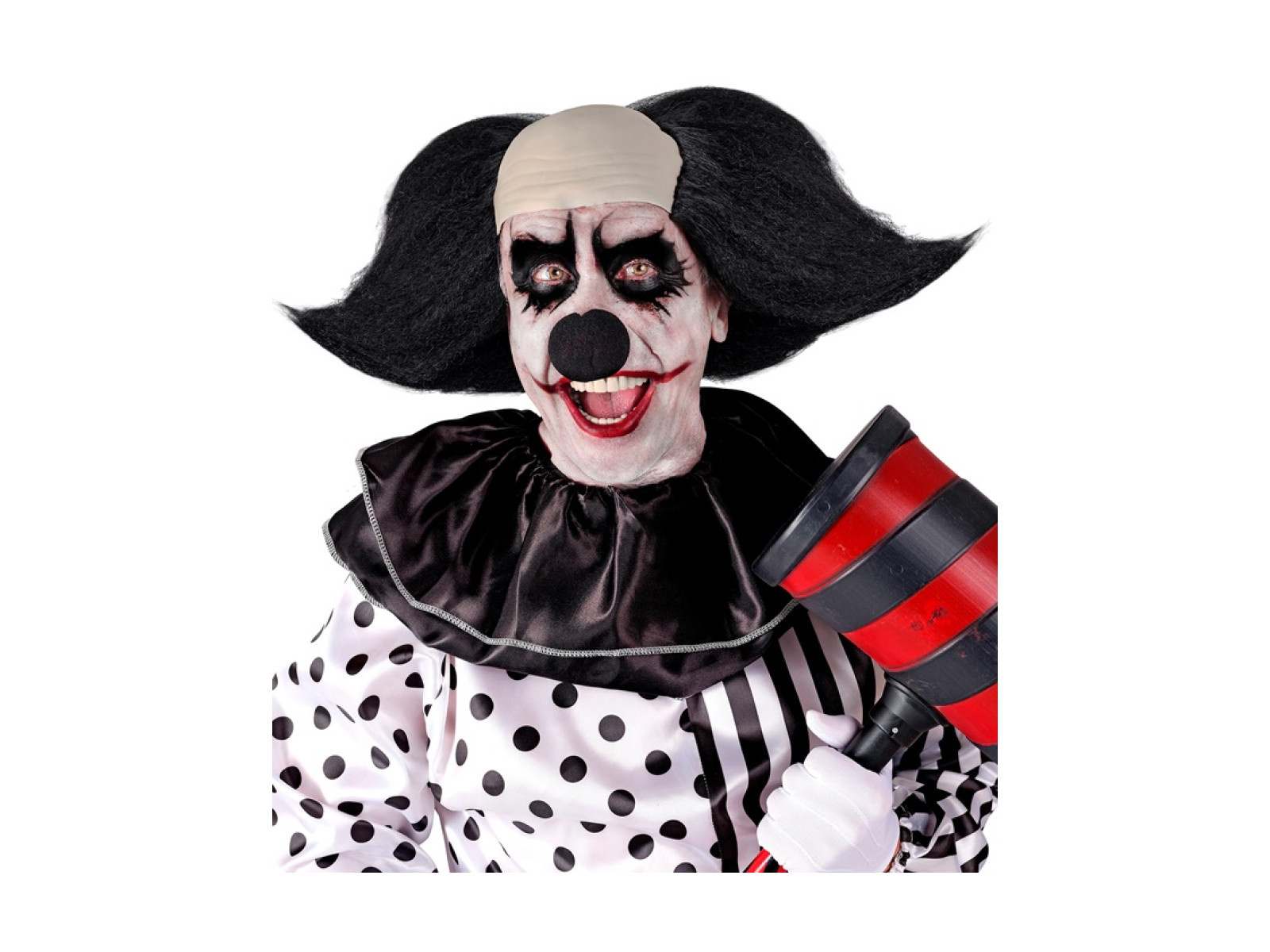 Fekete hajú, baljós bohóc fejfedője