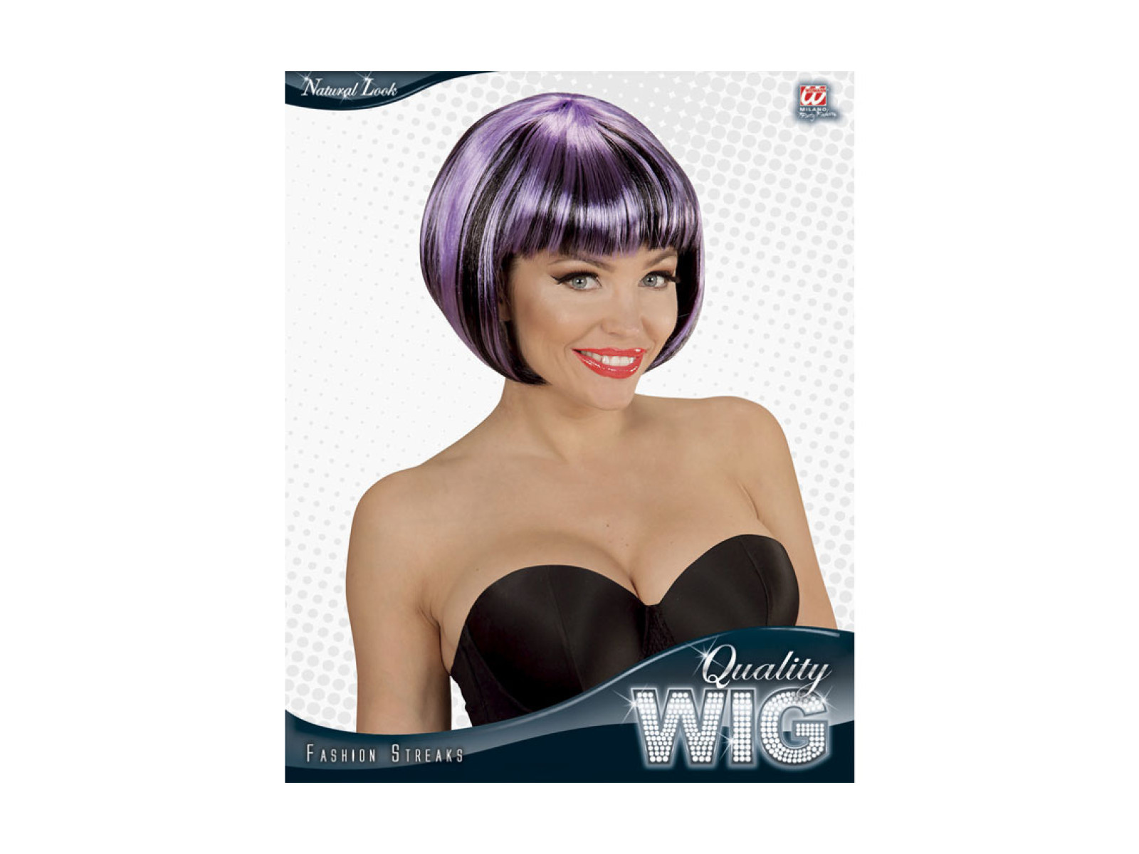 Fekete és lila paróka divatos kiemelésekkel
