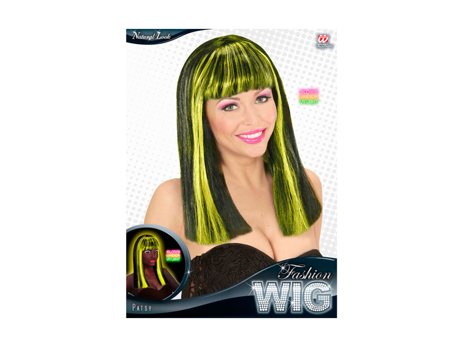Fekete és sárga neon Patsy paróka kiemelésekkel