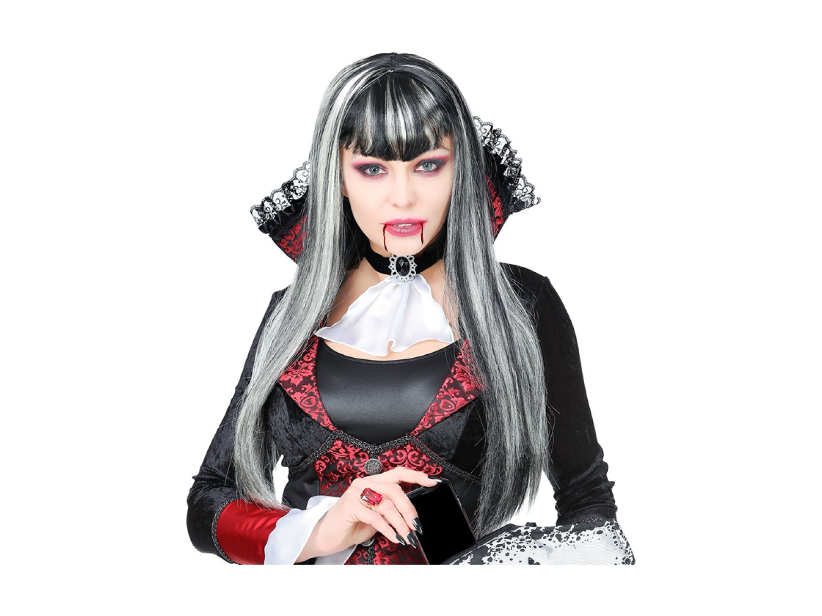Vampiria hosszú fekete-fehér paróka