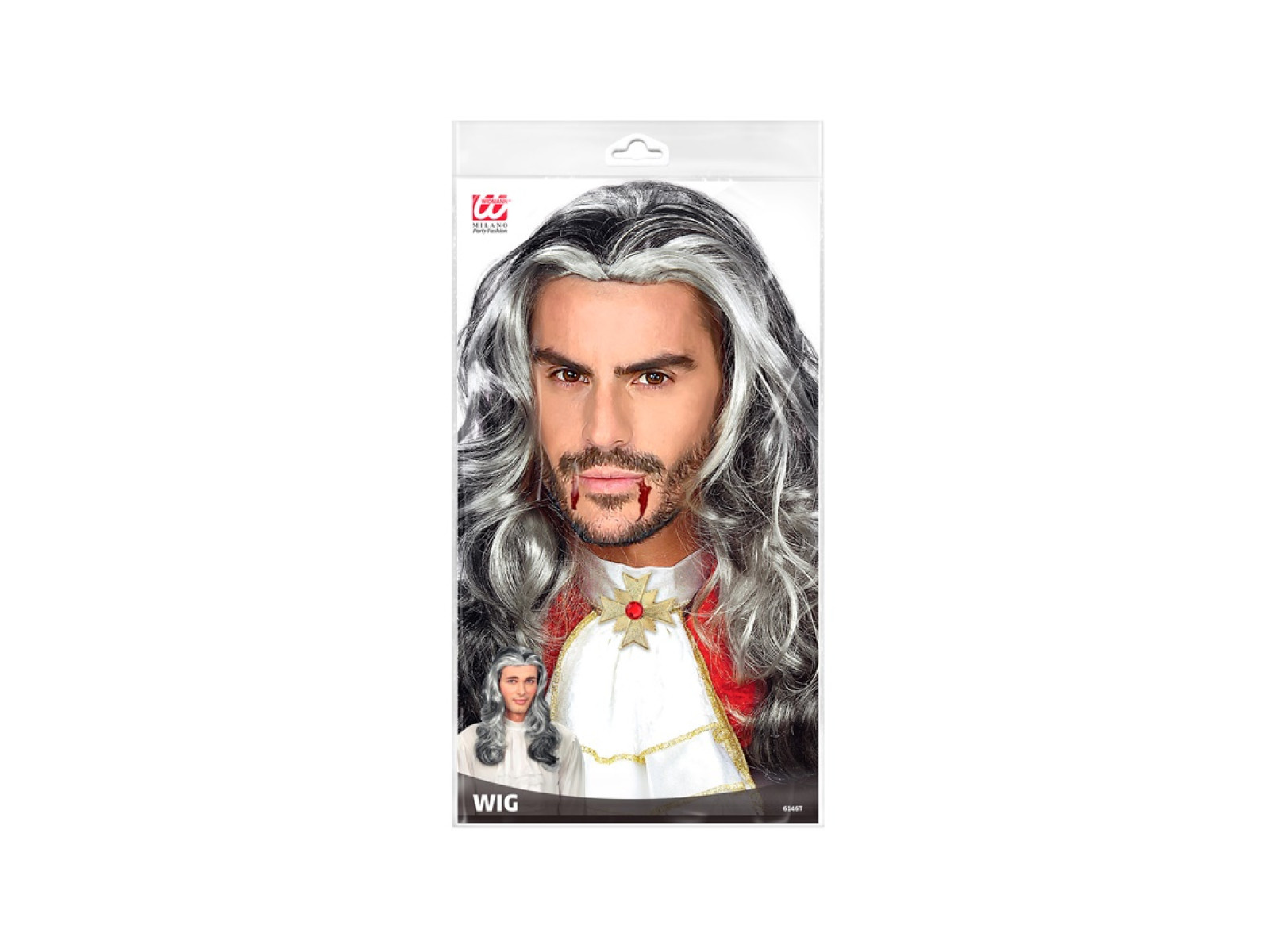 Hosszú fekete és szürke kifinomult vámpír paróka