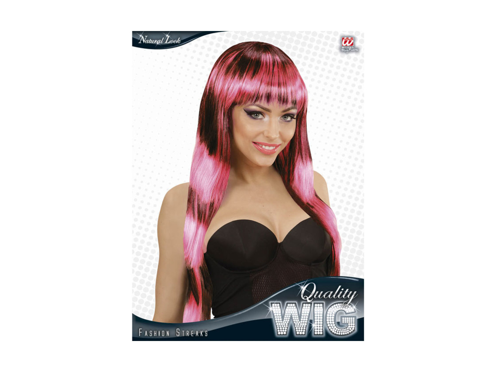 Fekete és rózsaszín paróka divatos kiemelésekkel