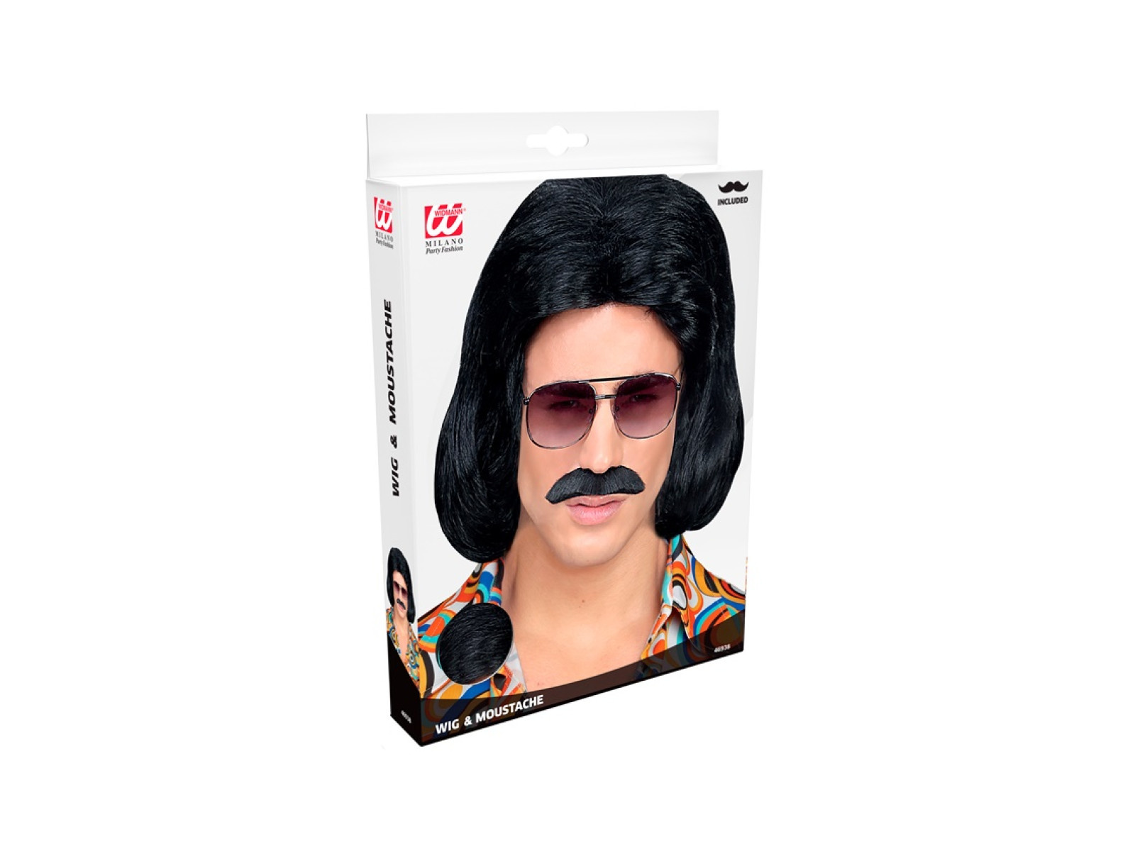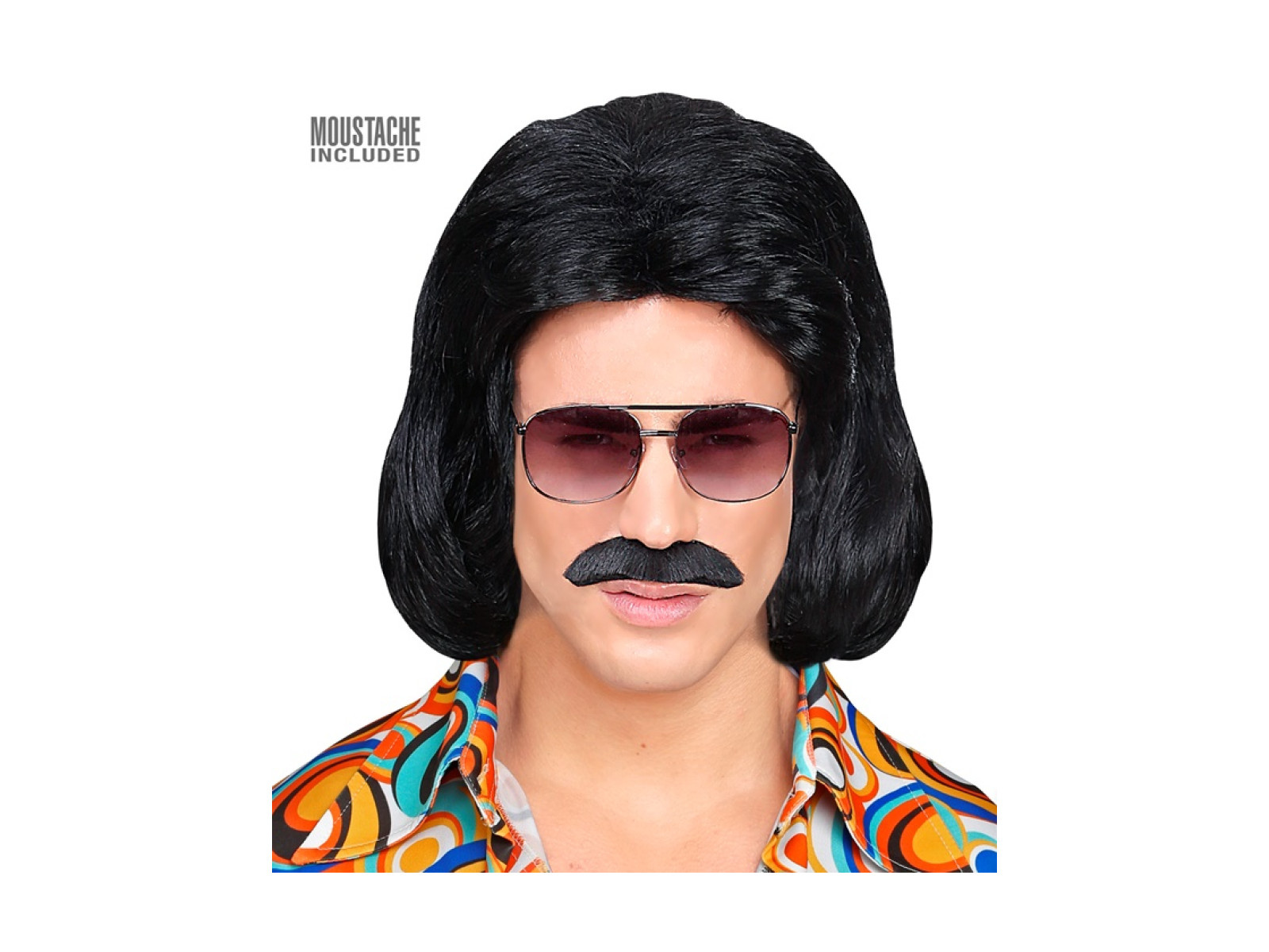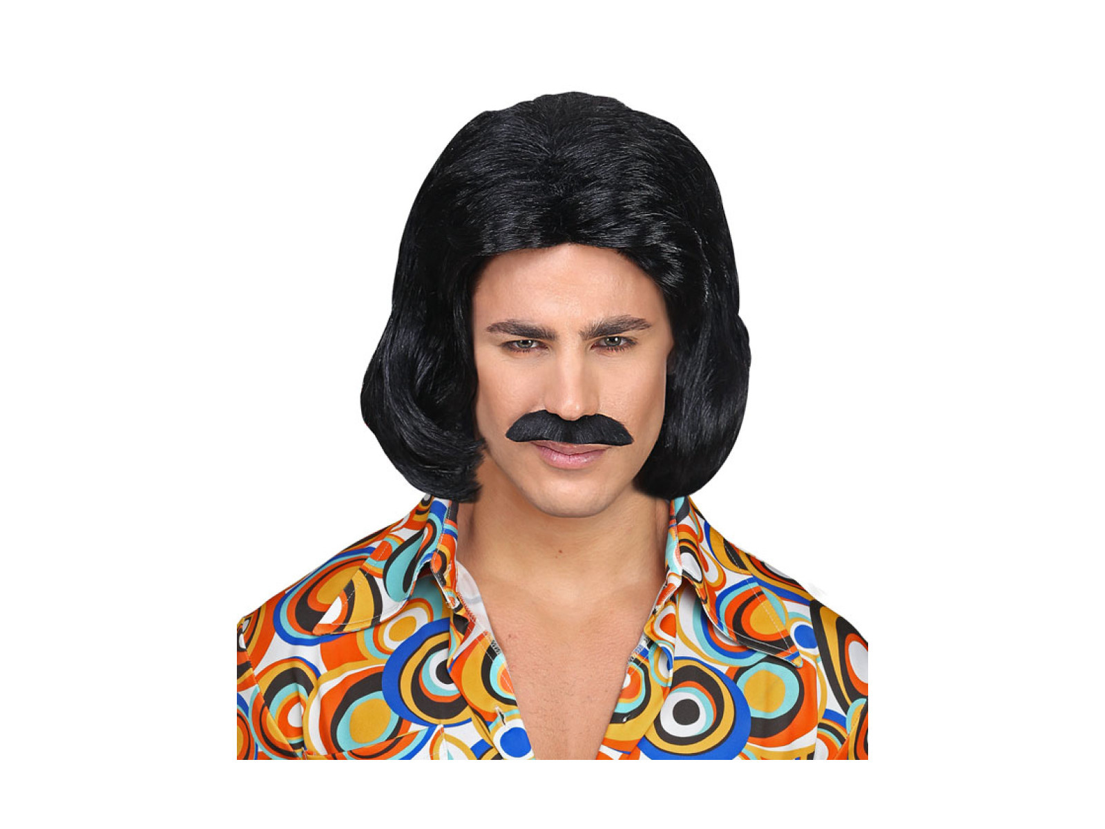 Dandy fekete parókája az 1970-es évekből. bajusszal