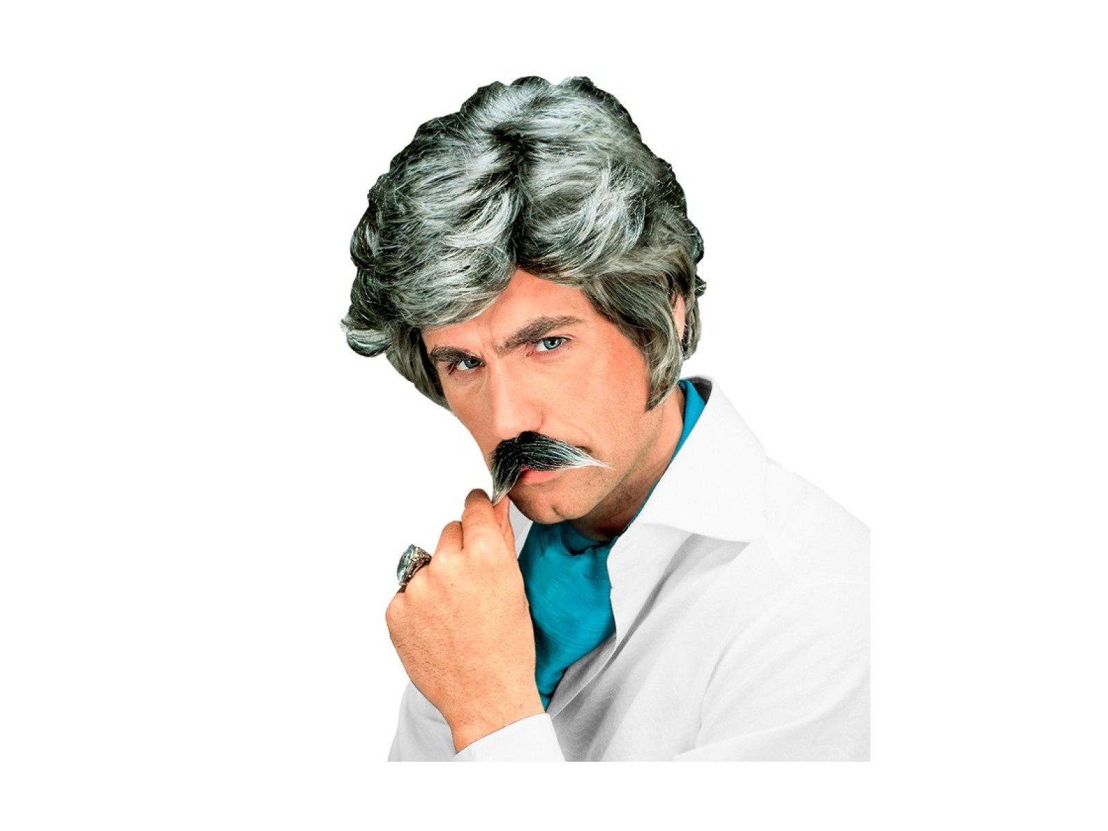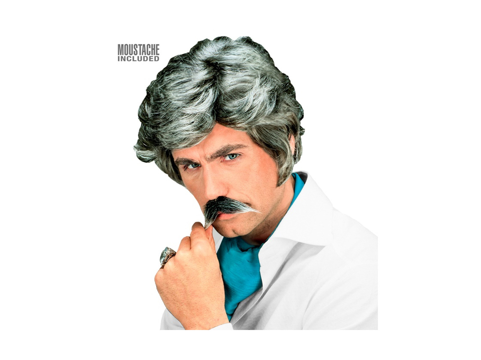• Szürke Playboy paróka bajusszal férfiaknak.