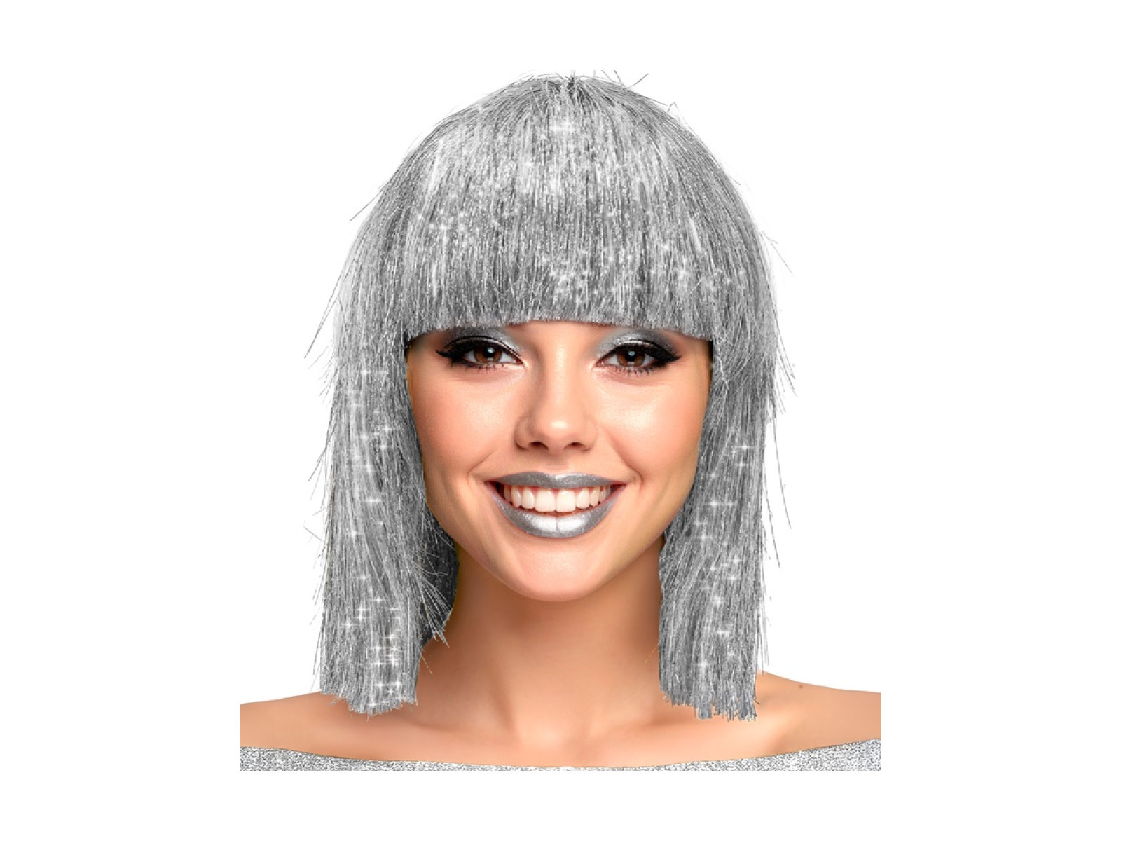 • Csillogó ezüst paróka nőknek.