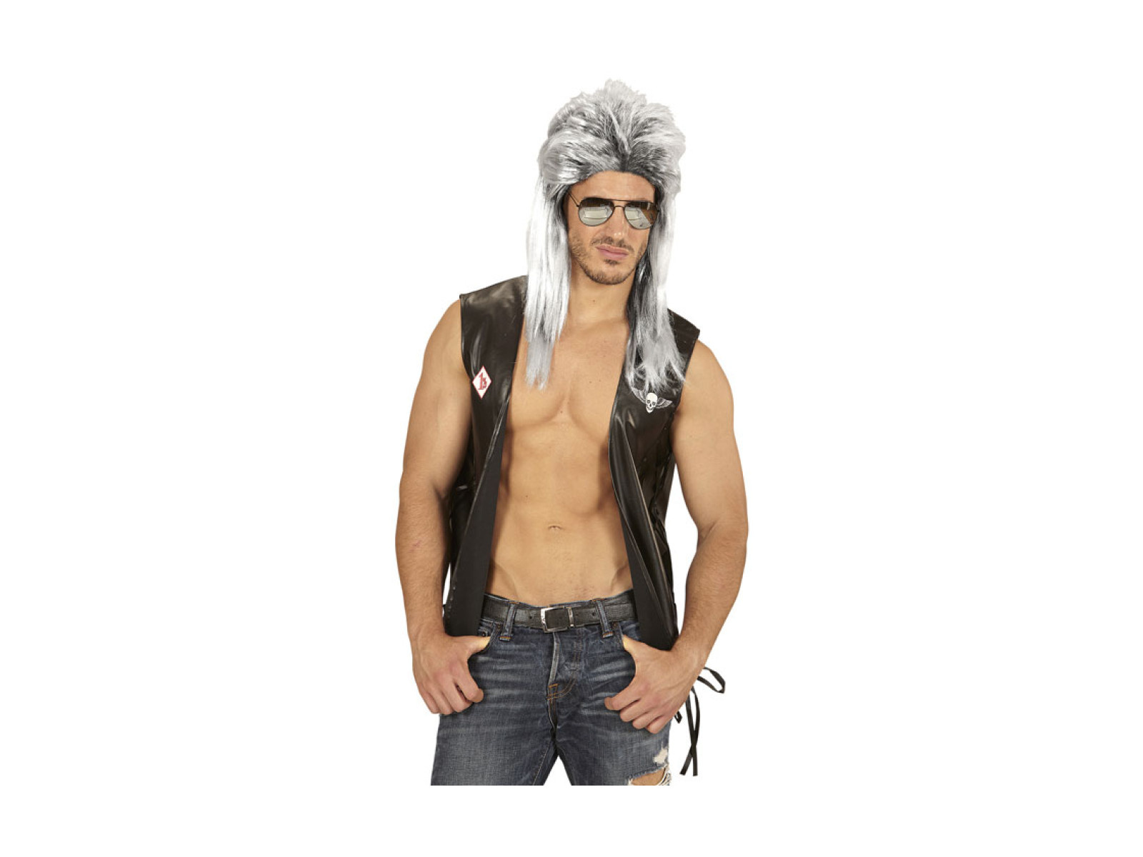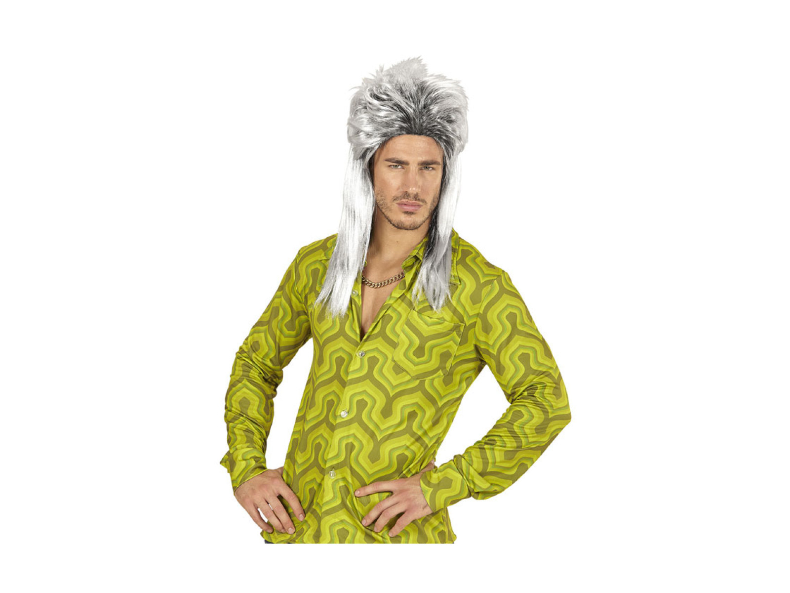 • Vokuhila szürke paróka férfiaknak.