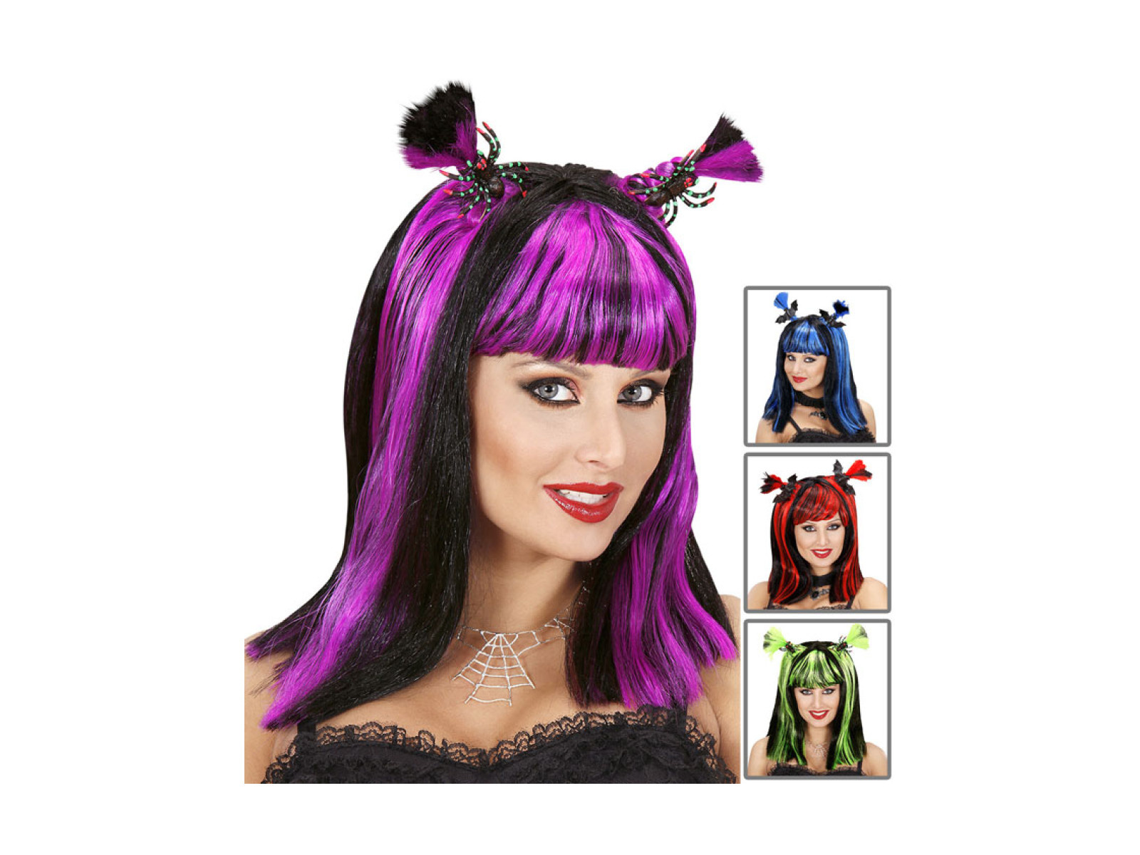 Halloween paróka pókokkal / denevérekkel - 4 színben (mix)