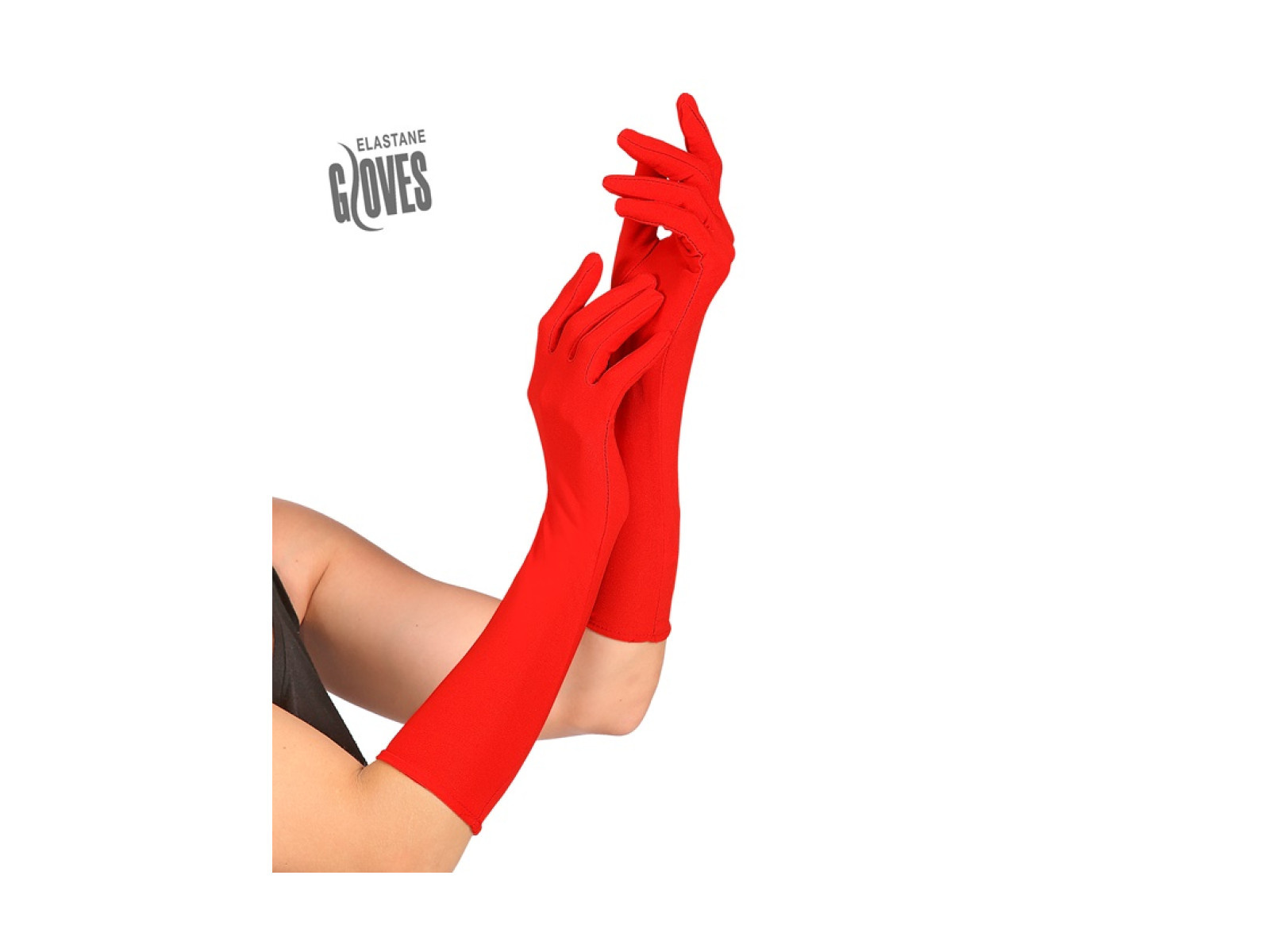 • Hosszú piros kesztyű elasztánból 40 cm-es női kesztyű.
