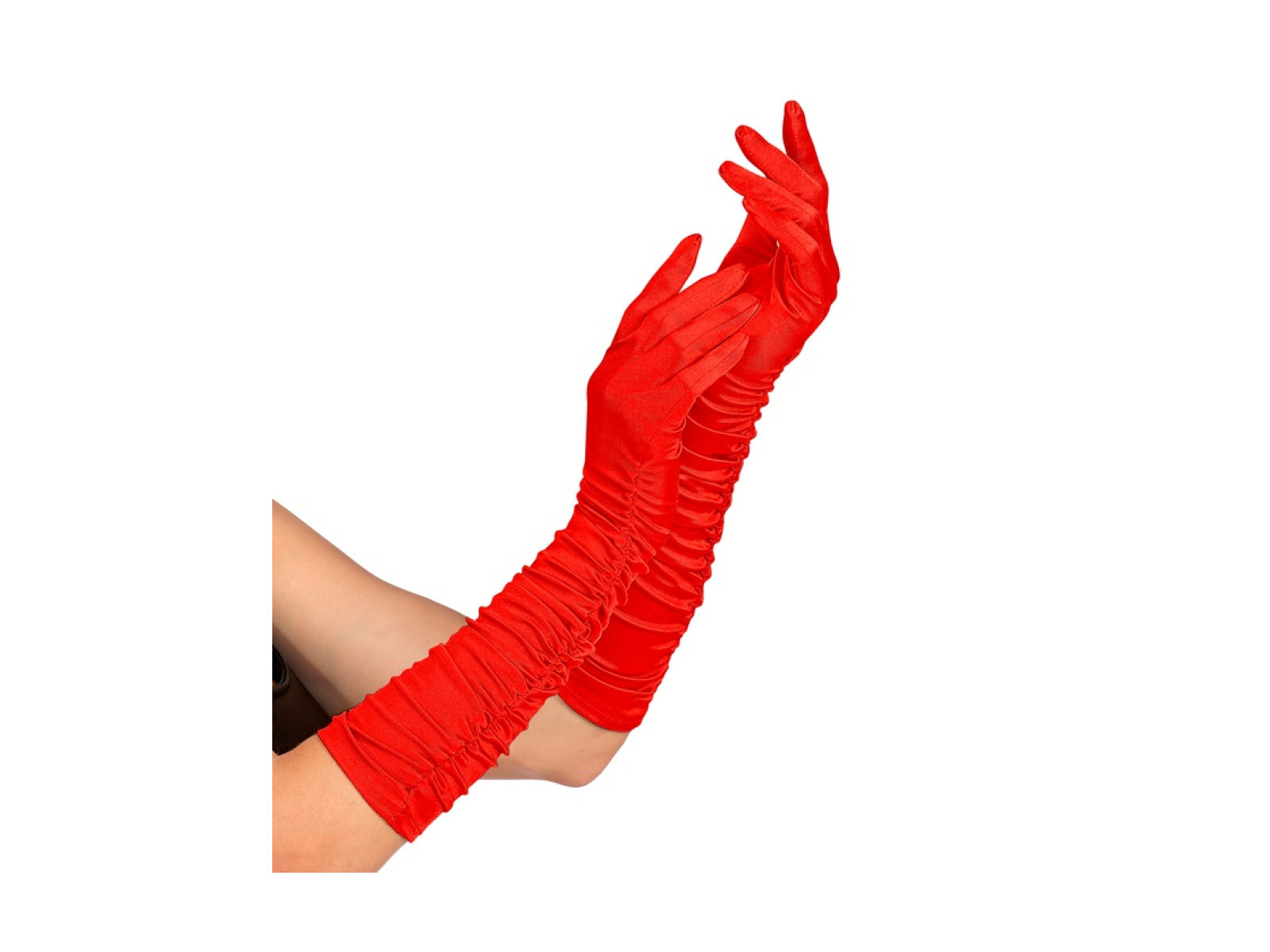 • Piros pliszírozott szatén kesztyű elasztánból 44 cm-es női kesztyű.